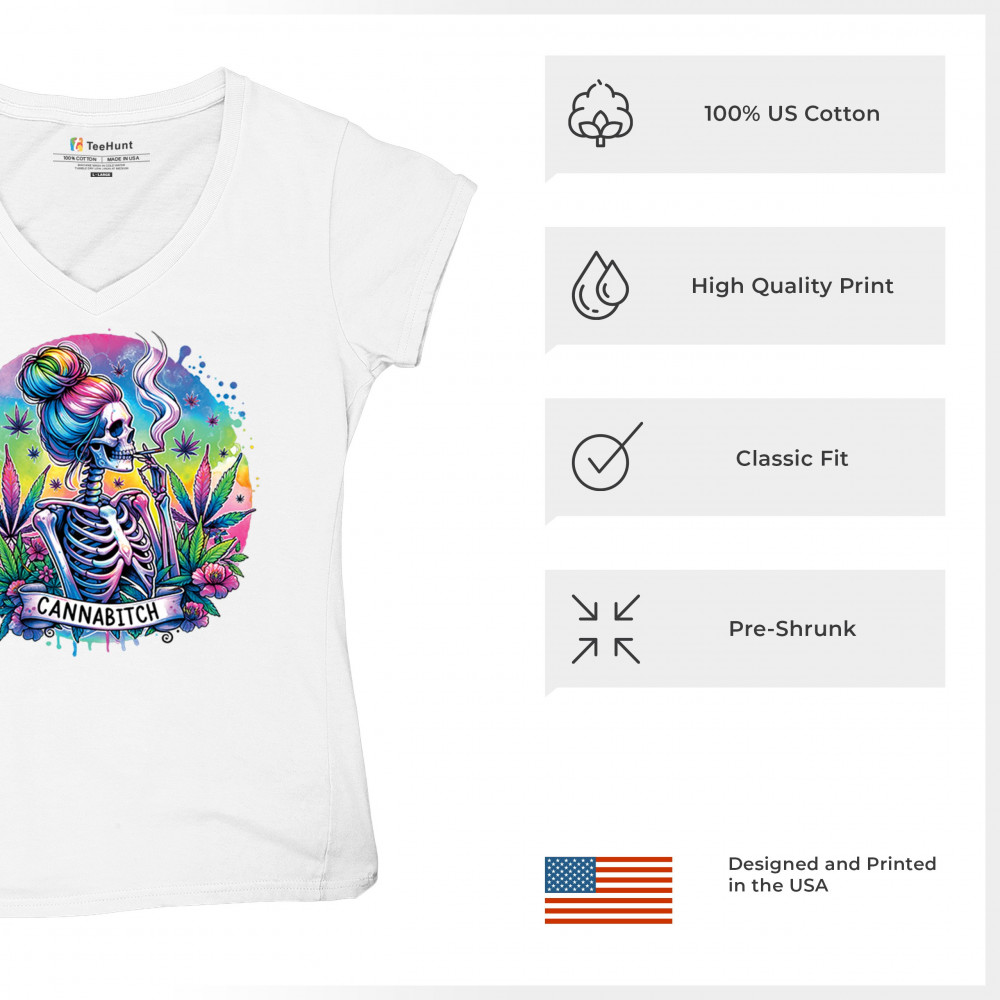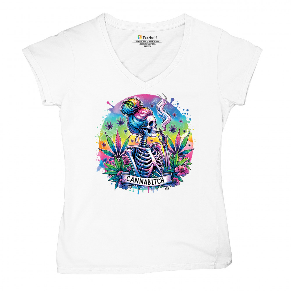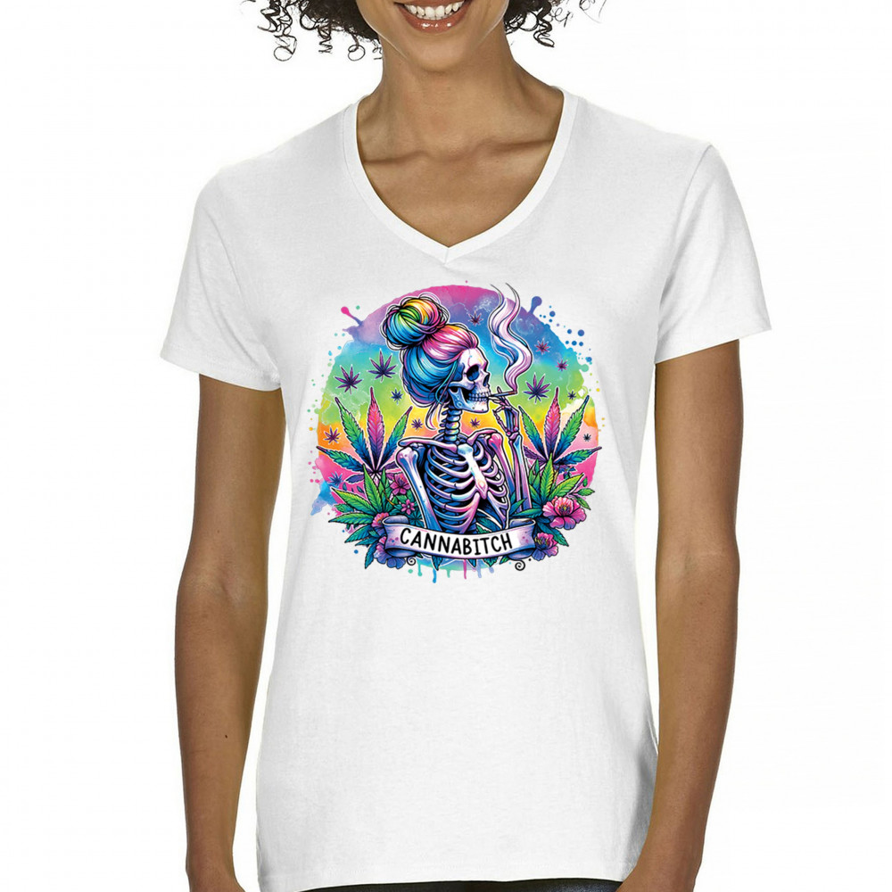 Unleash your inner weed queen with this CANNABITCH design—a psychedelic rainbow skeleton with major stoner girl energy. Dripping in neon colors, bold bud leaves, and fierce feminine vibes, it's a head-turning graphic for cannabis culture lovers, party girls, and unapologetically high women.