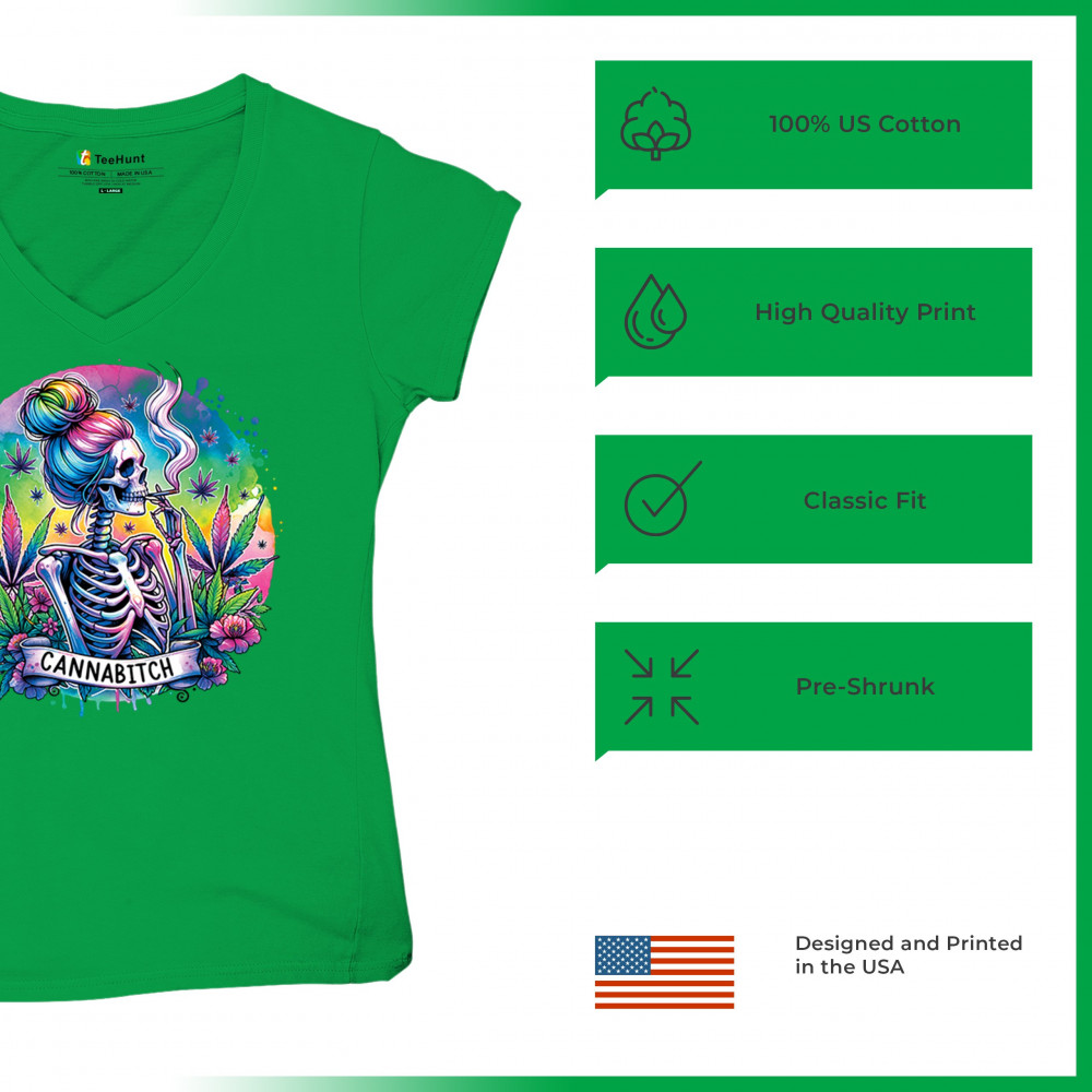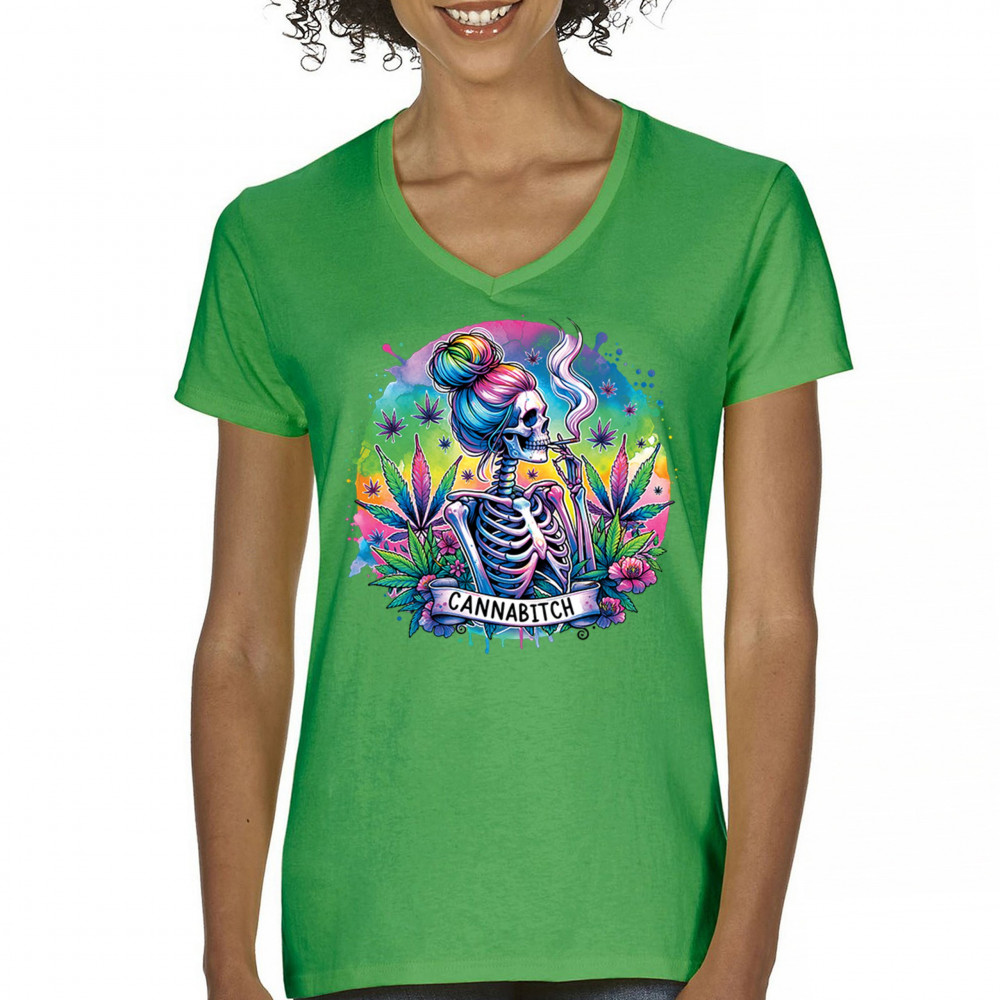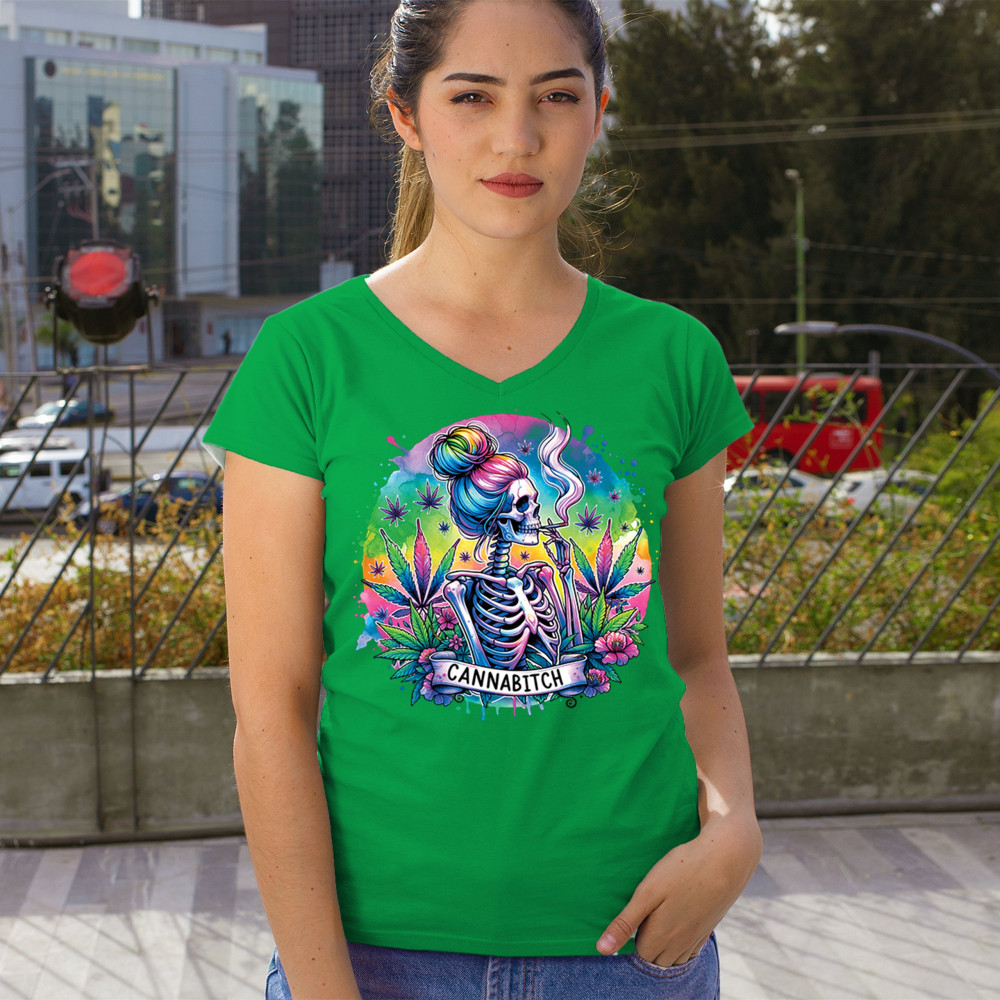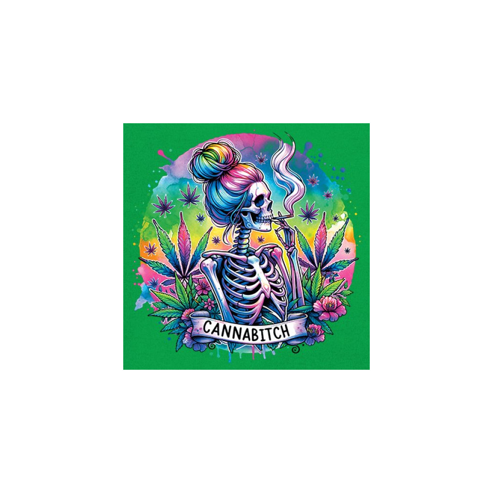 Unleash your inner weed queen with this CANNABITCH design—a psychedelic rainbow skeleton with major stoner girl energy. Dripping in neon colors, bold bud leaves, and fierce feminine vibes, it's a head-turning graphic for cannabis culture lovers, party girls, and unapologetically high women.
