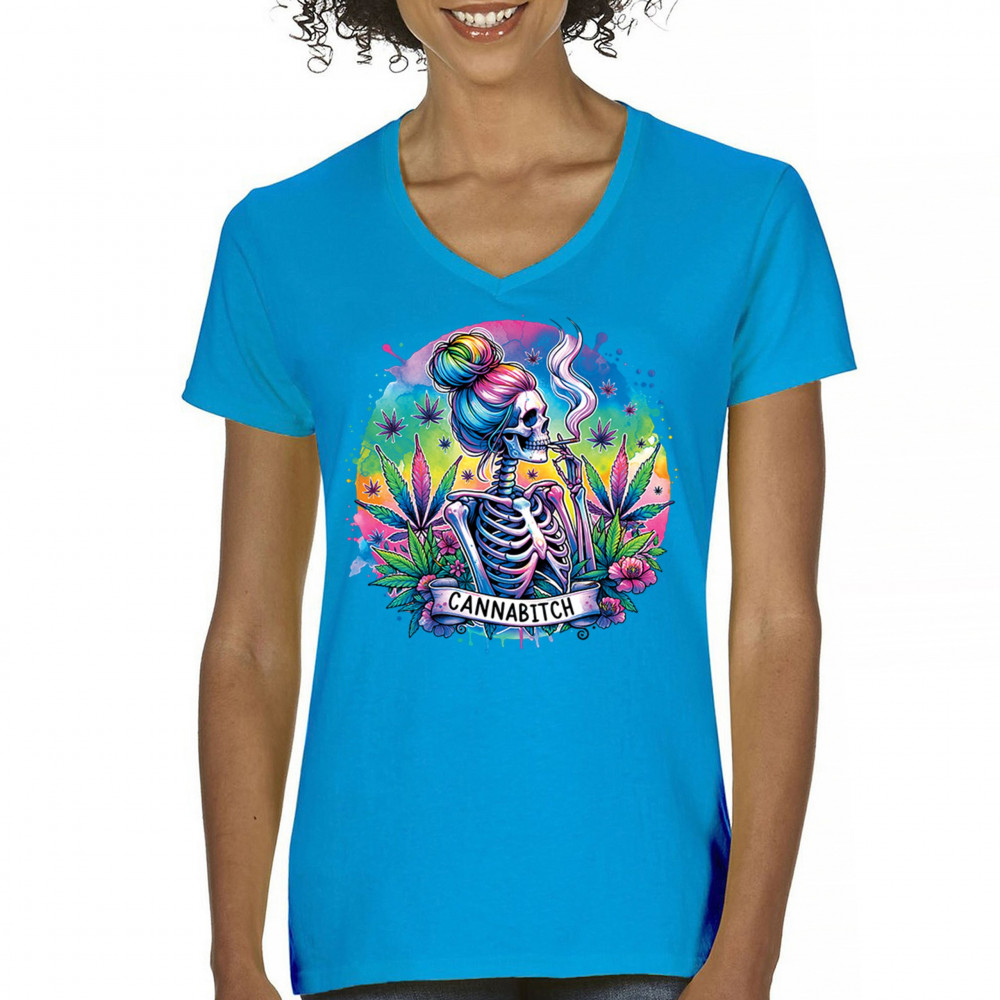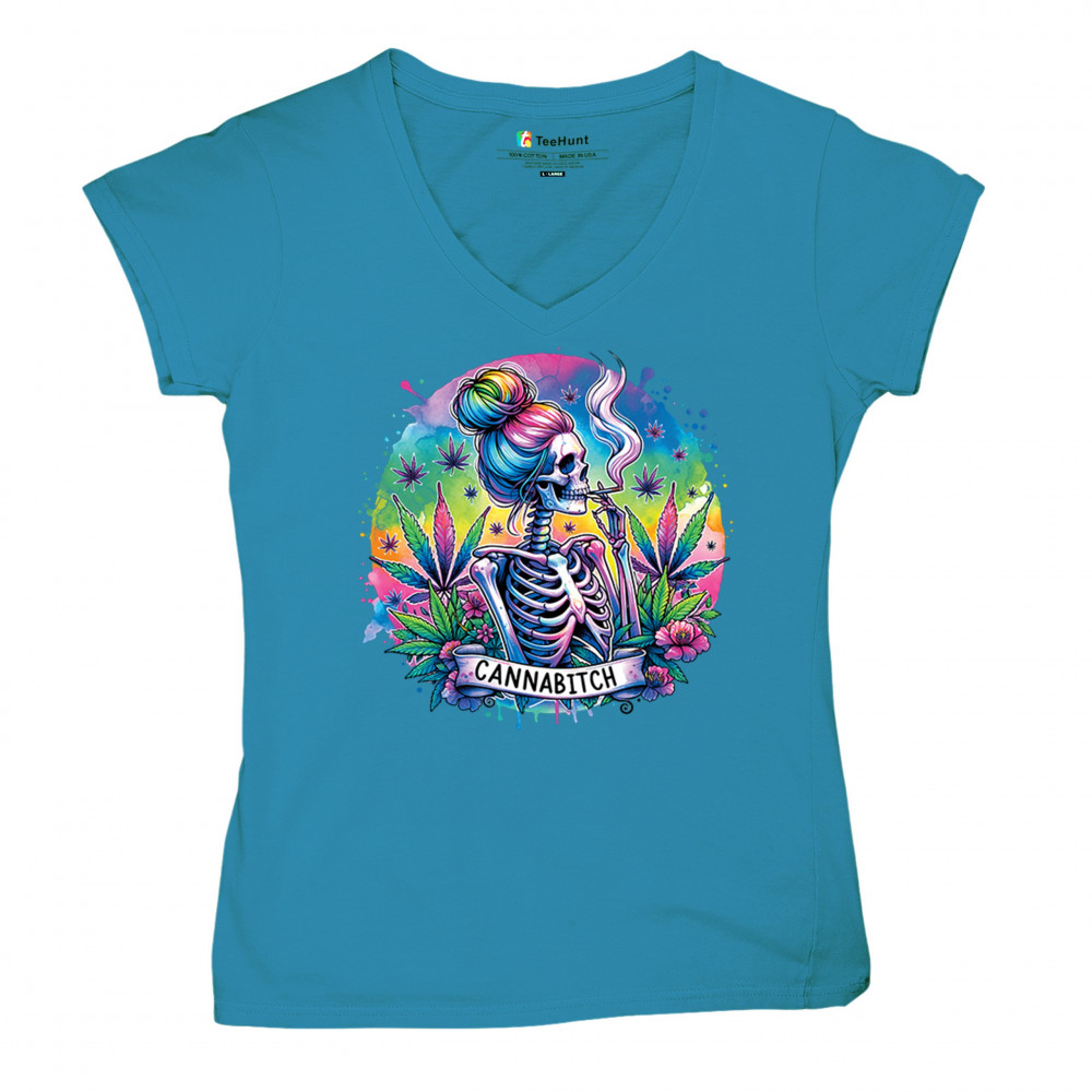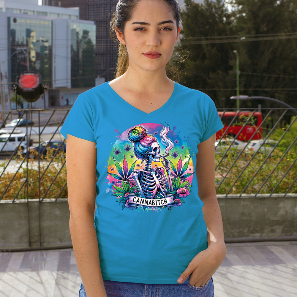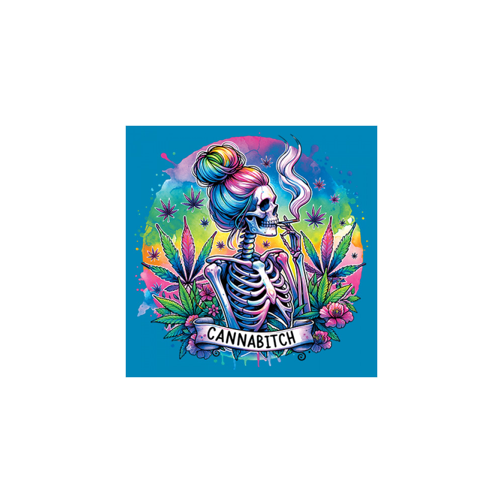 Unleash your inner weed queen with this CANNABITCH design—a psychedelic rainbow skeleton with major stoner girl energy. Dripping in neon colors, bold bud leaves, and fierce feminine vibes, it's a head-turning graphic for cannabis culture lovers, party girls, and unapologetically high women.