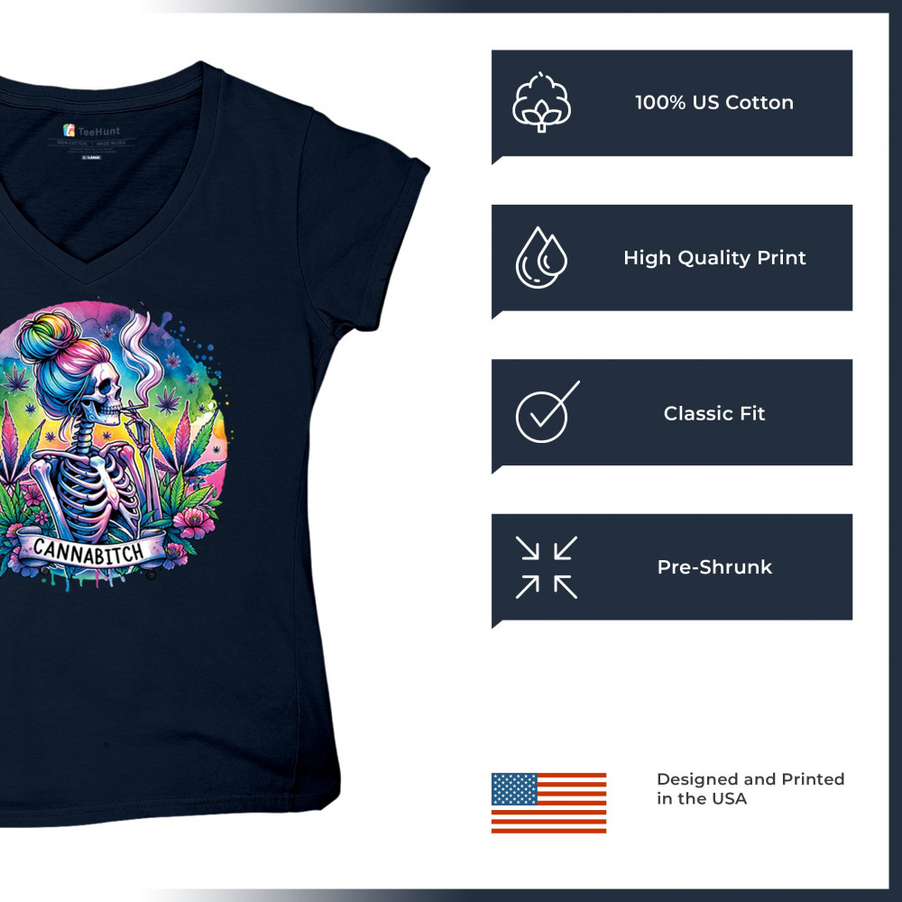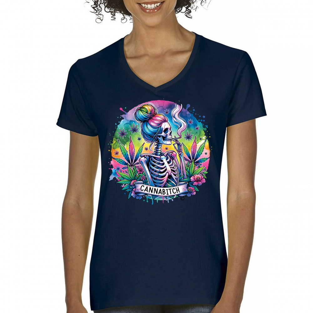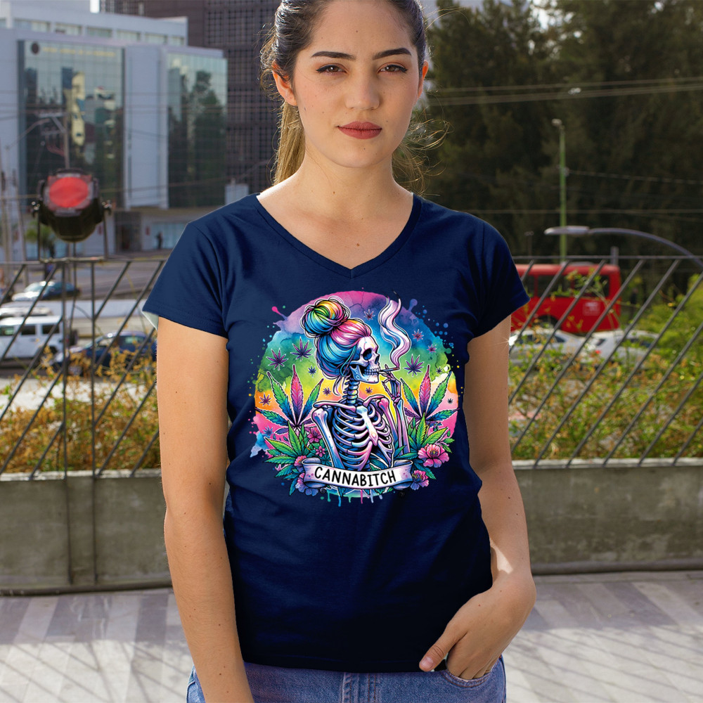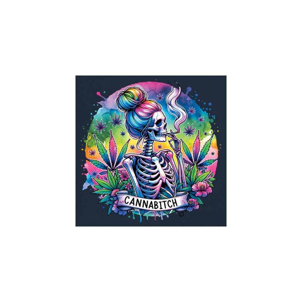 Unleash your inner weed queen with this CANNABITCH design—a psychedelic rainbow skeleton with major stoner girl energy. Dripping in neon colors, bold bud leaves, and fierce feminine vibes, it's a head-turning graphic for cannabis culture lovers, party girls, and unapologetically high women.