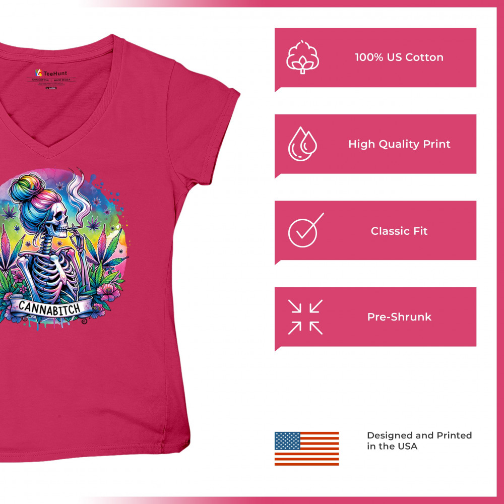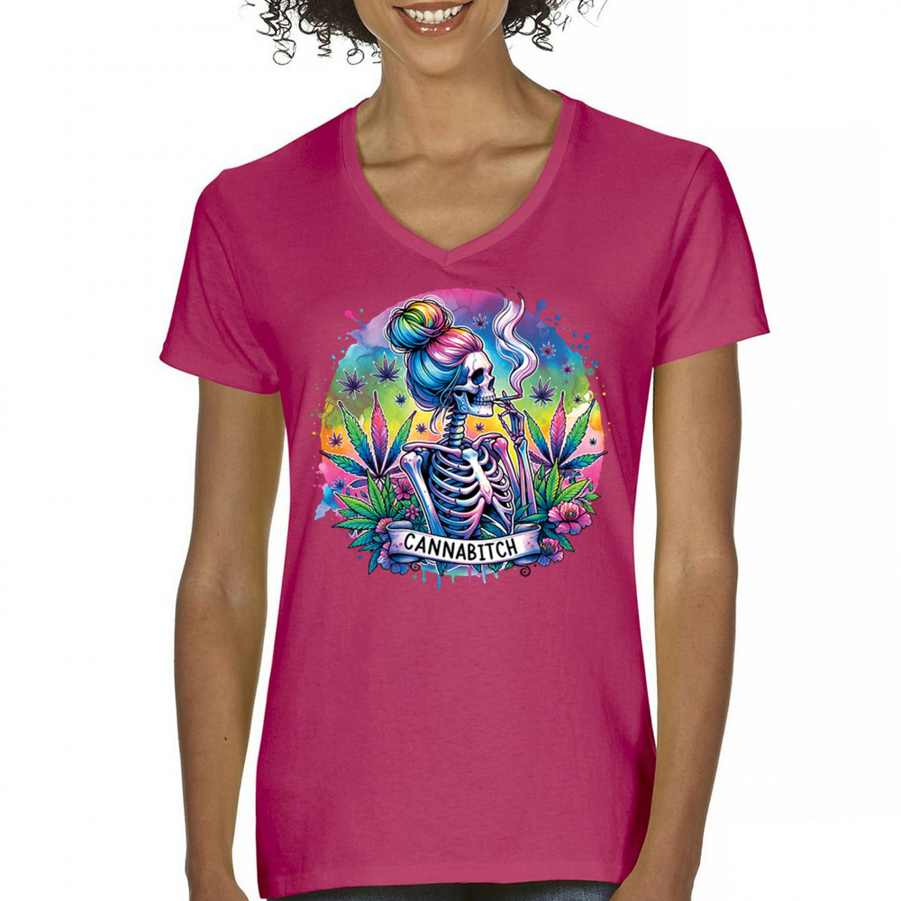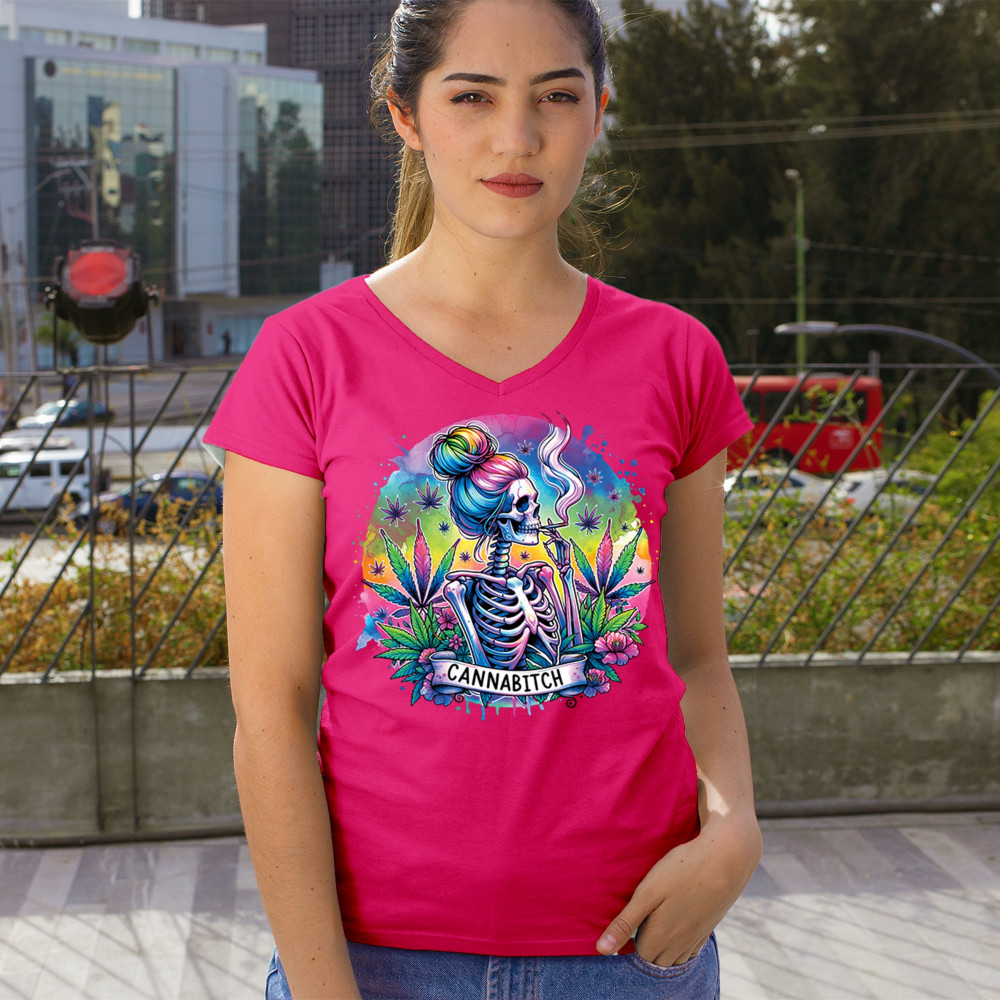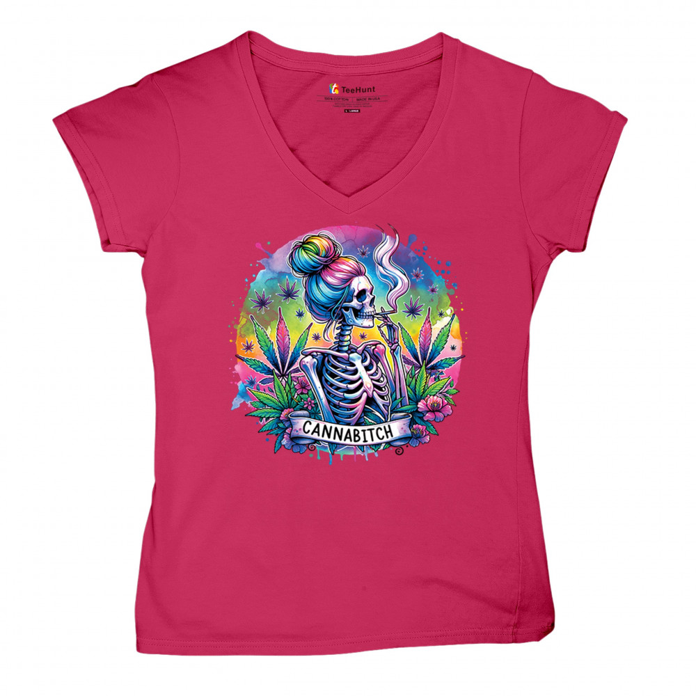 Unleash your inner weed queen with this CANNABITCH design—a psychedelic rainbow skeleton with major stoner girl energy. Dripping in neon colors, bold bud leaves, and fierce feminine vibes, it's a head-turning graphic for cannabis culture lovers, party girls, and unapologetically high women.