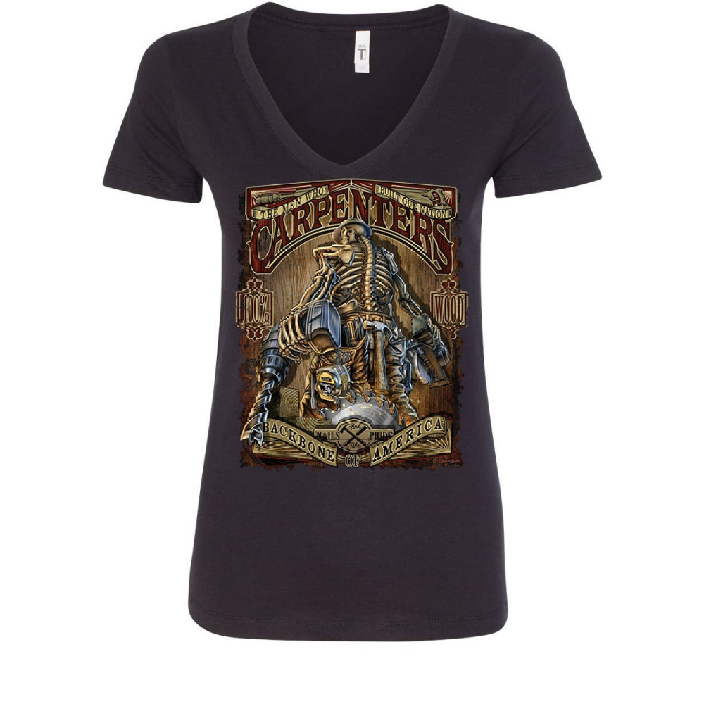 CARPENTERS - BACKBONE OF AMERICA carpenters backbone of america women's v-neck t-shirt blue collar job craftsman black