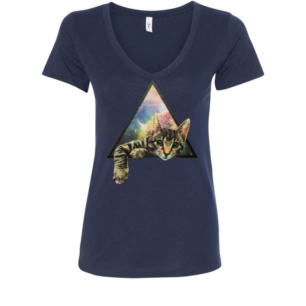 GALAXY CAT women's v-neck t-shirt cute kitten pet universe navy blue