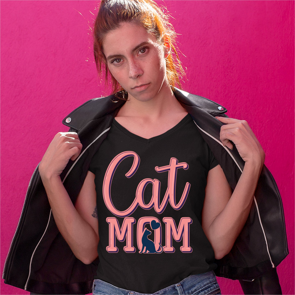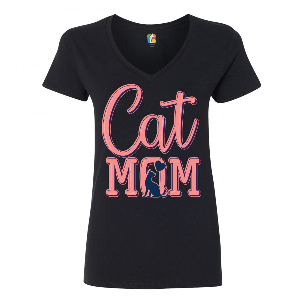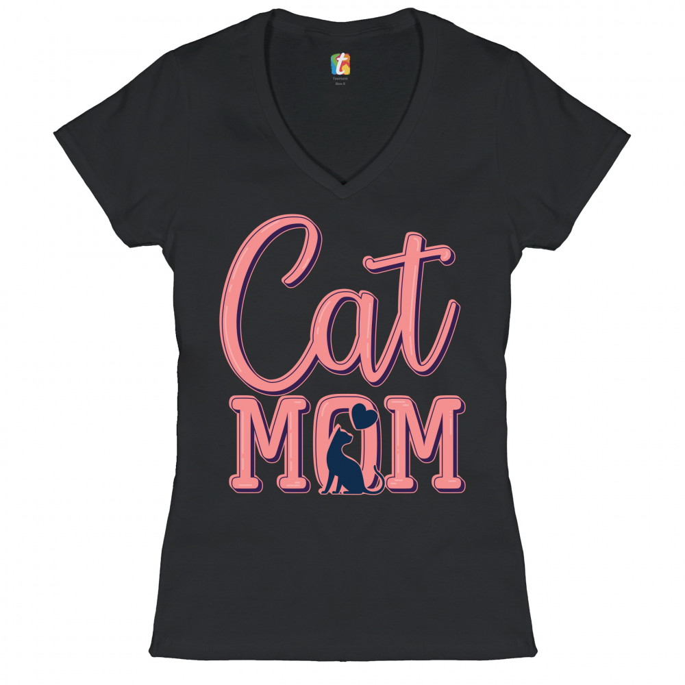 CAT MOM women's v-neck t-shirt mother's day i love my my pet lover tee black