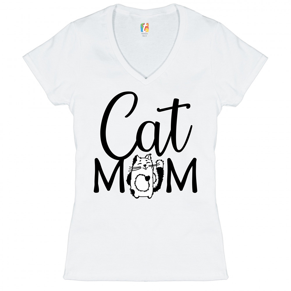 CAT MOM women's v-neck t-shirt mother's day fur mama cat lover kitty tee white
