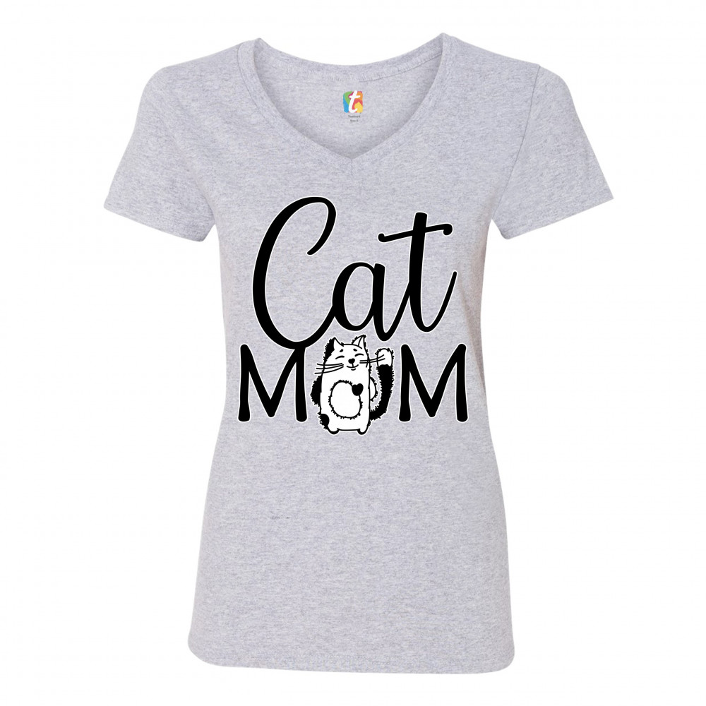CAT MOM women's v-neck t-shirt mother's day fur mama cat lover kitty tee gray