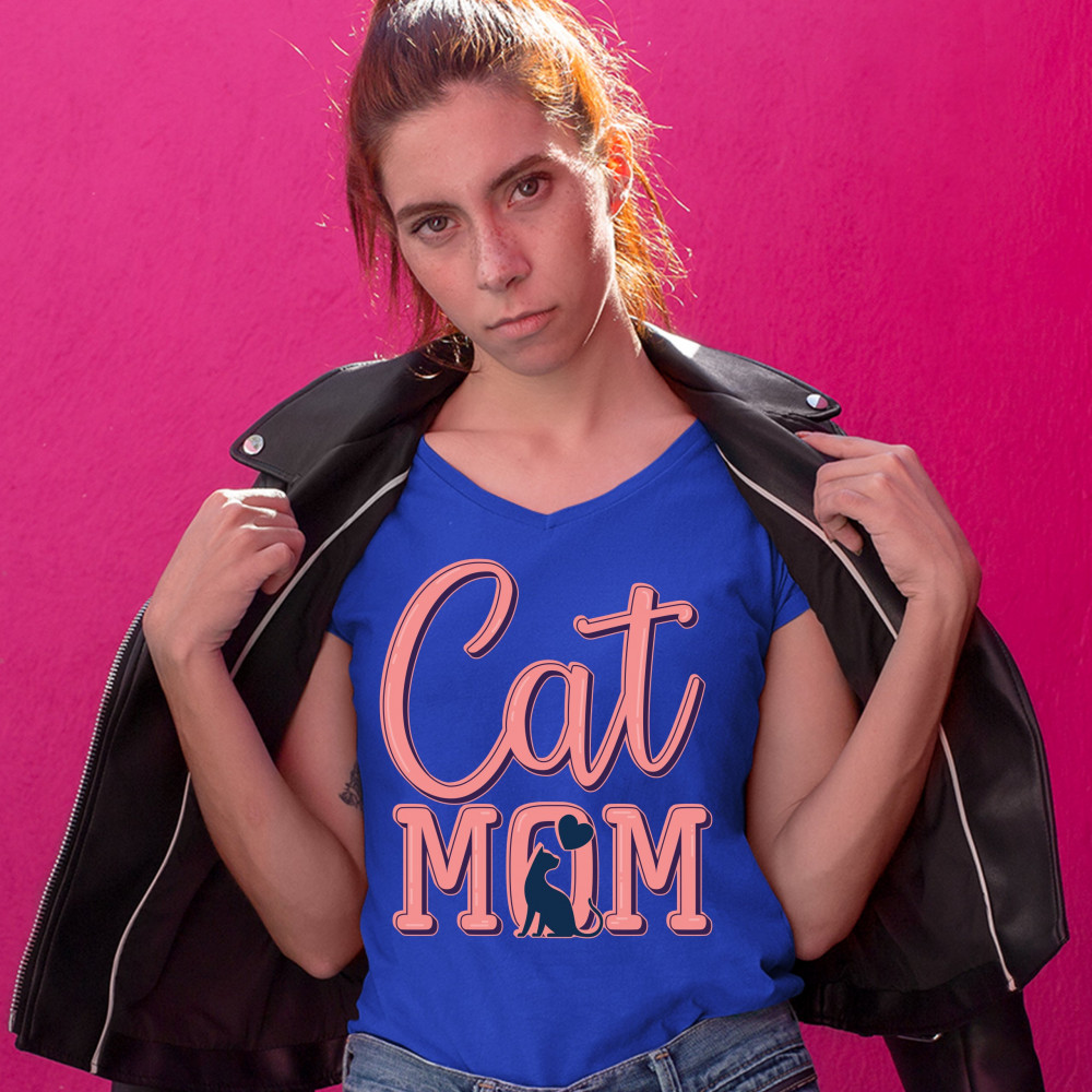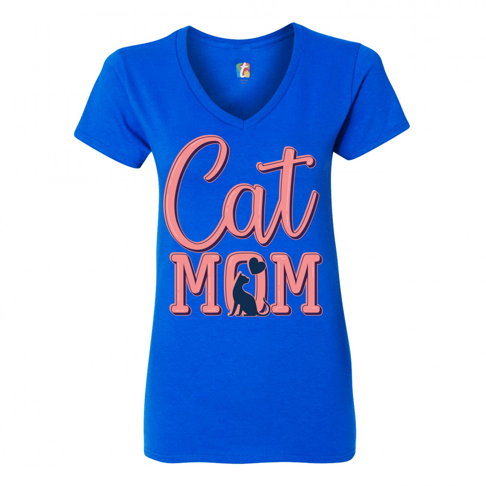 CAT MOM women's v-neck t-shirt mother's day i love my my pet lover tee royal blue