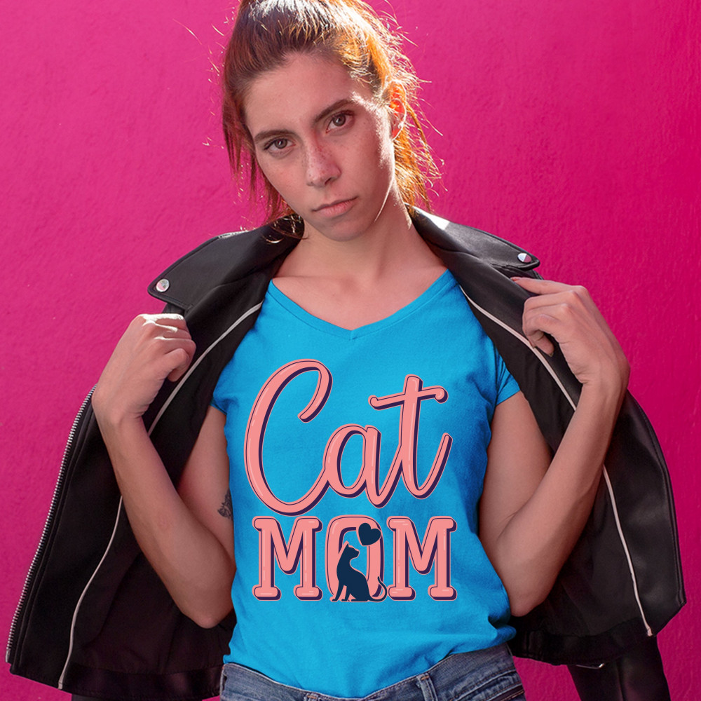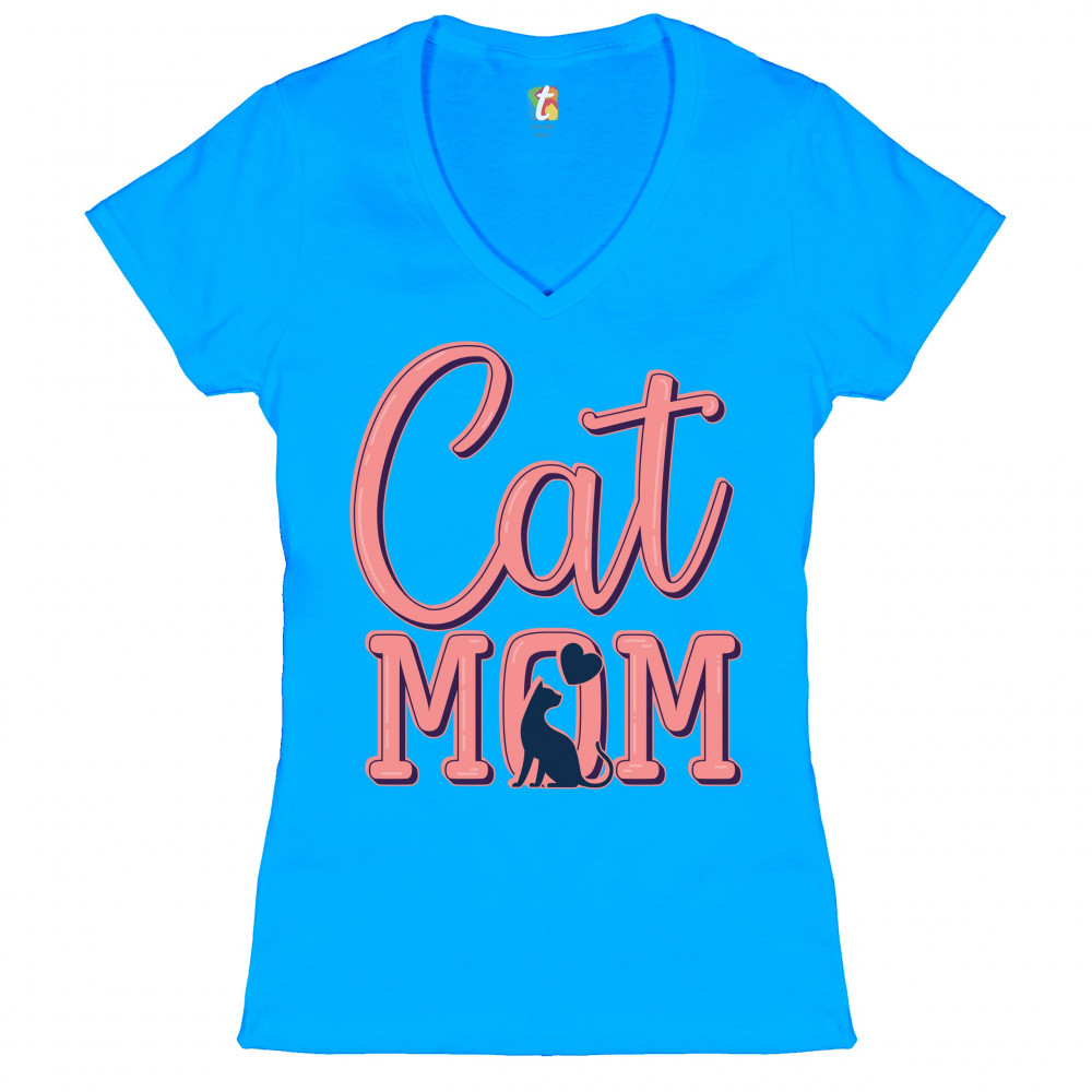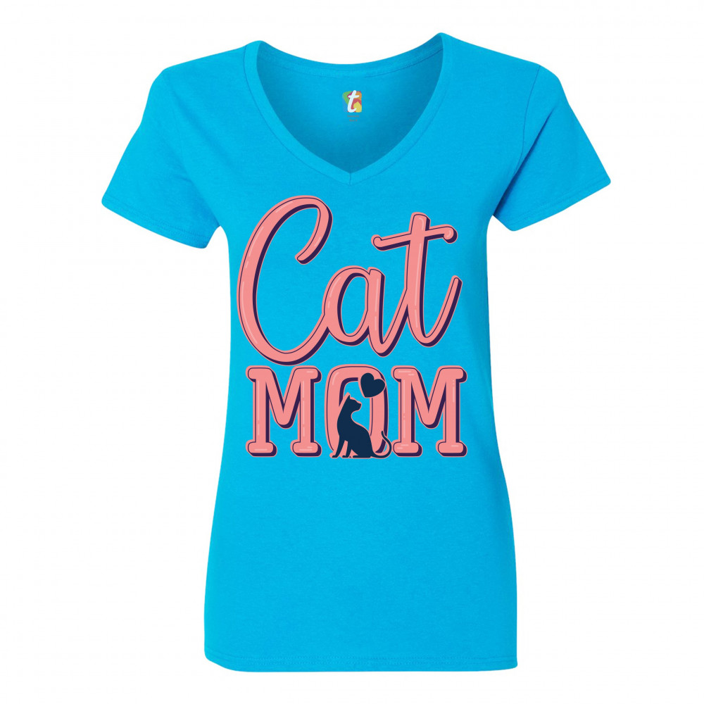 CAT MOM women's v-neck t-shirt mother's day i love my my pet lover tee turquoise