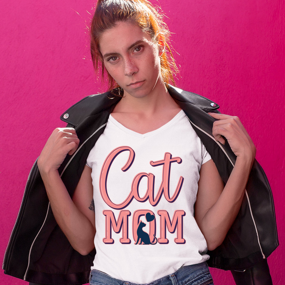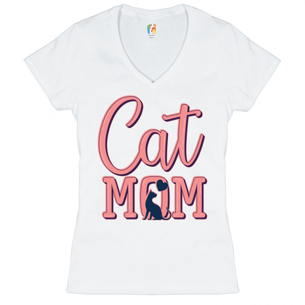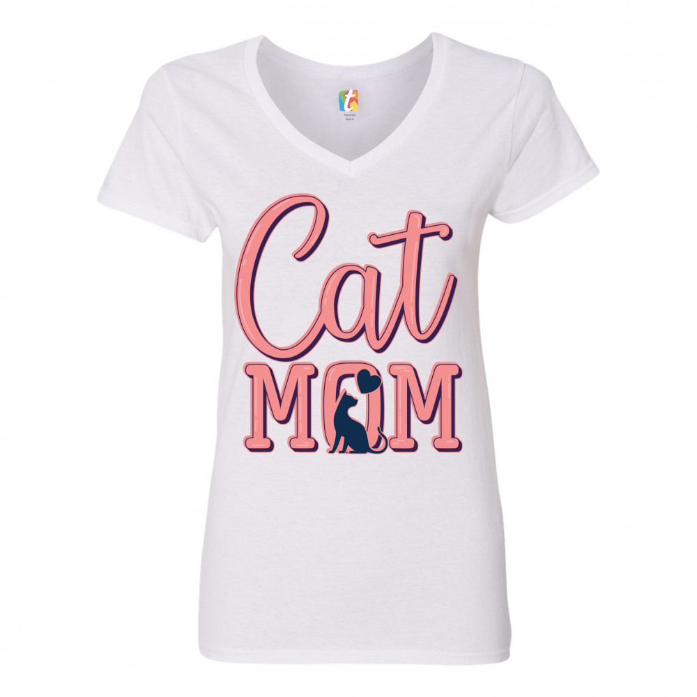 CAT MOM women's v-neck t-shirt mother's day i love my my pet lover tee white