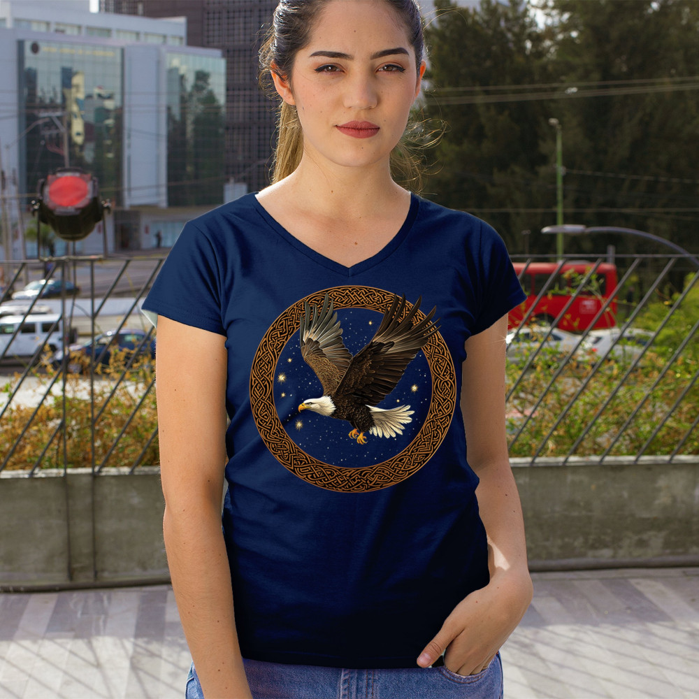 This powerful bald eagle takes flight within a Celtic knotwork circle, radiating strength, independence, and cosmic energy. The glowing stars and celestial background add mystic symbolism, blending nature, tribal design, and spirituality. Perfect for patriots, spiritual seekers, and bird enthusiasts.