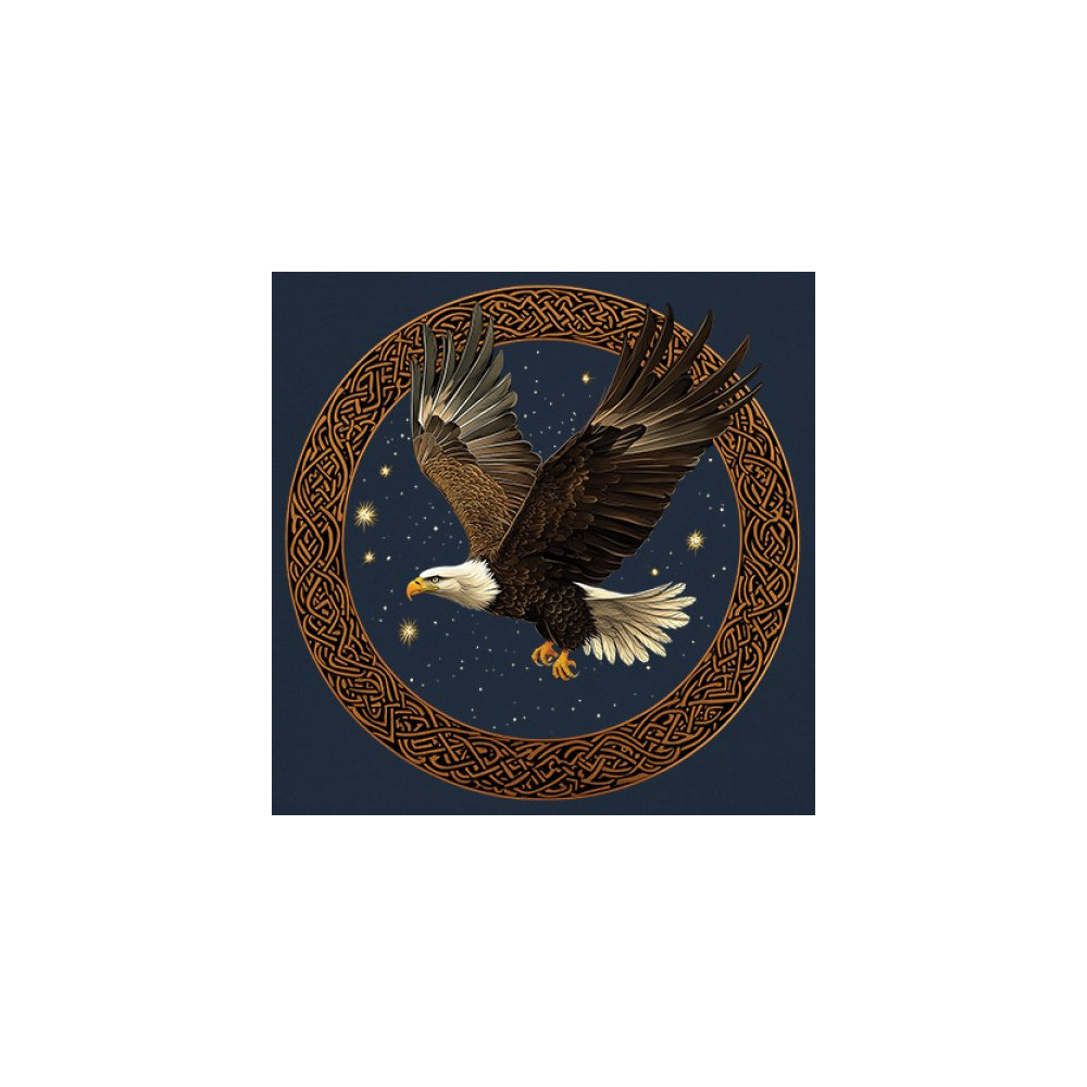 Bald eagle flying in Celtic circle with stars. A bold symbol of freedom, spiritual power, and protection—perfect for patriots and seekers.