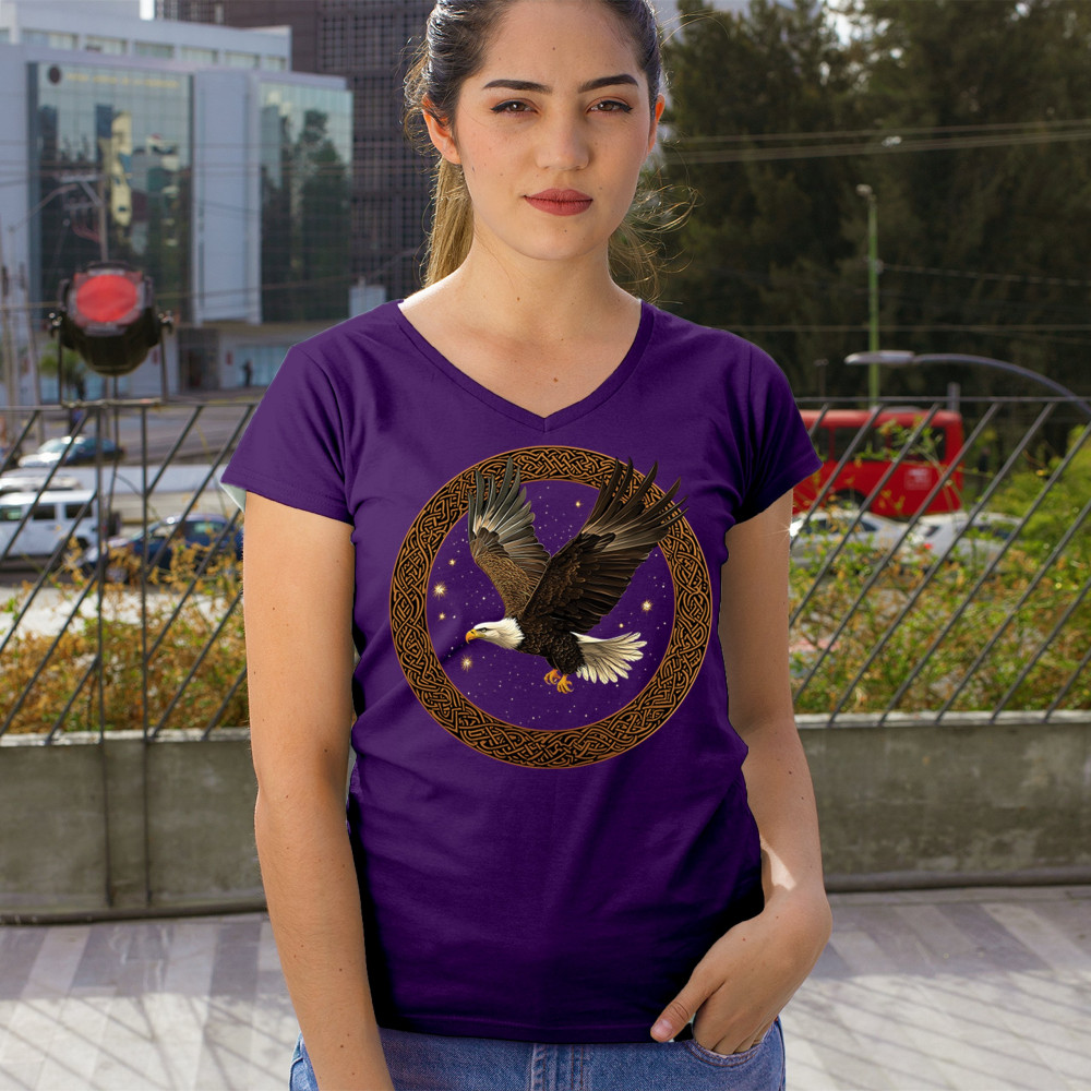 This powerful bald eagle takes flight within a Celtic knotwork circle, radiating strength, independence, and cosmic energy. The glowing stars and celestial background add mystic symbolism, blending nature, tribal design, and spirituality. Perfect for patriots, spiritual seekers, and bird enthusiasts.