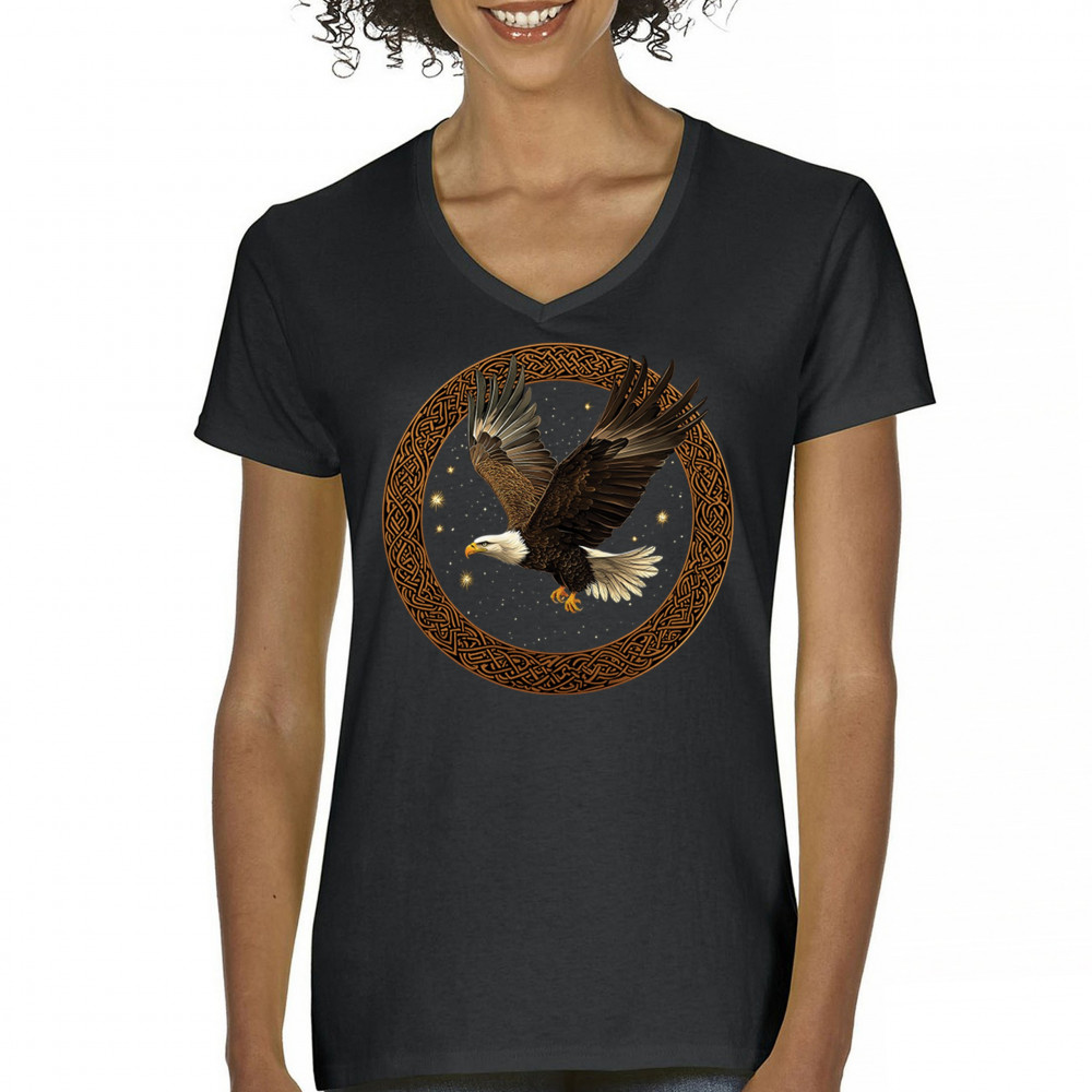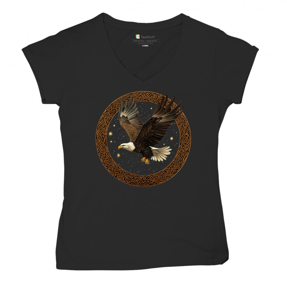 This powerful bald eagle takes flight within a Celtic knotwork circle, radiating strength, independence, and cosmic energy. The glowing stars and celestial background add mystic symbolism, blending nature, tribal design, and spirituality. Perfect for patriots, spiritual seekers, and bird enthusiasts.