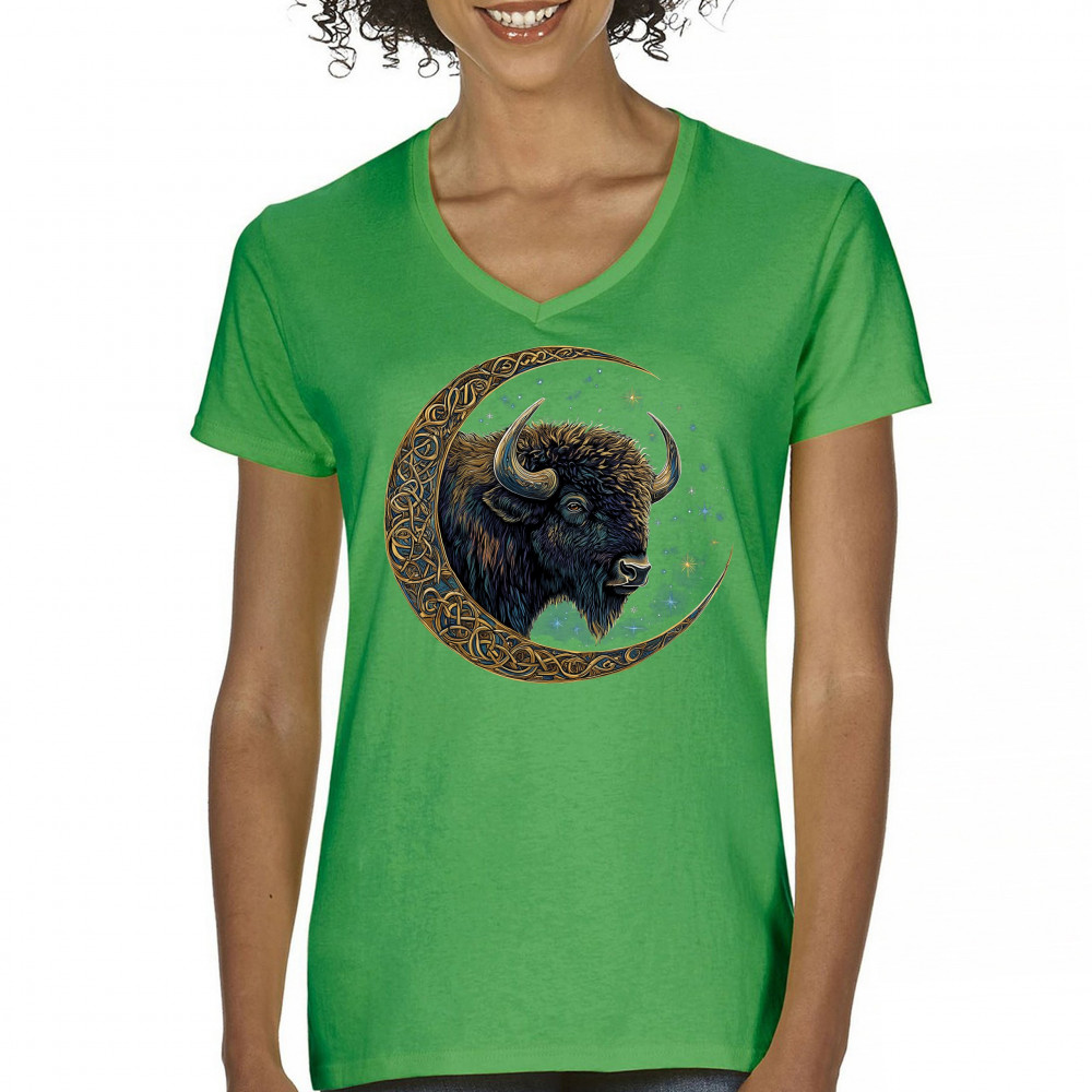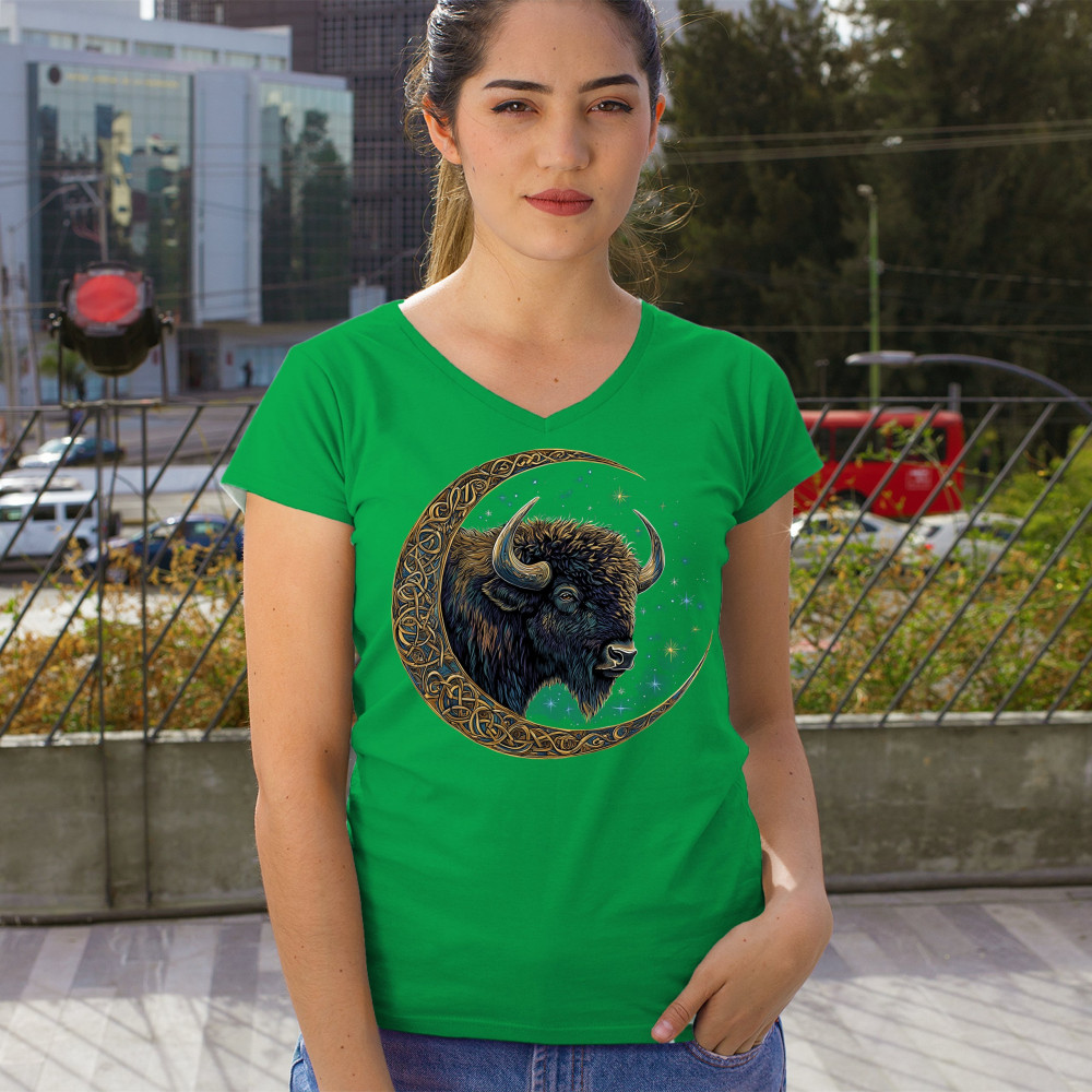 Mystical bison in Celtic moon—perfect for spiritual seekers, art fans, stargazers, and lovers of nature, tribal design, and cosmic energy.
