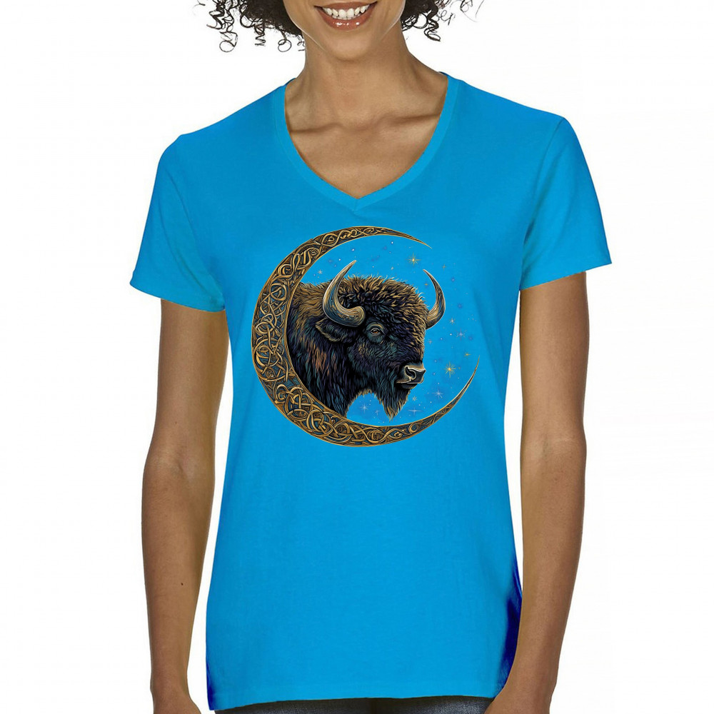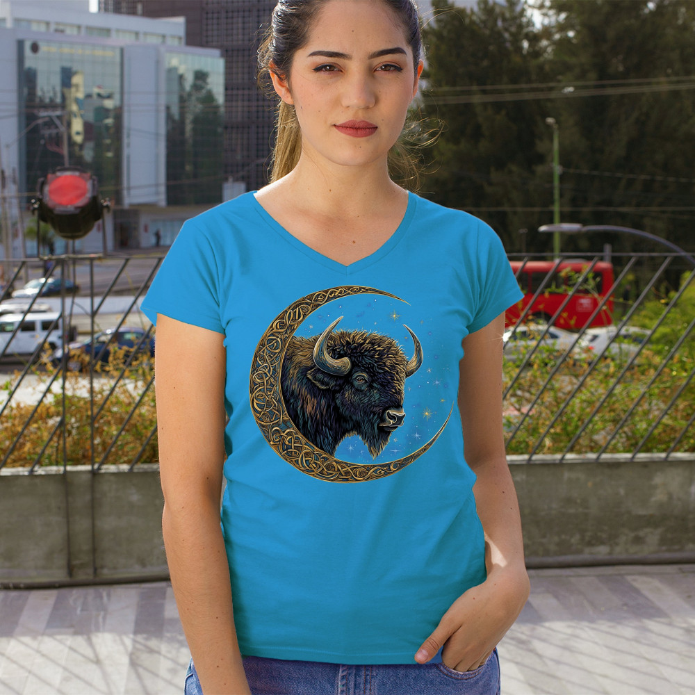 Mystical bison in Celtic moon—perfect for spiritual seekers, art fans, stargazers, and lovers of nature, tribal design, and cosmic energy.
