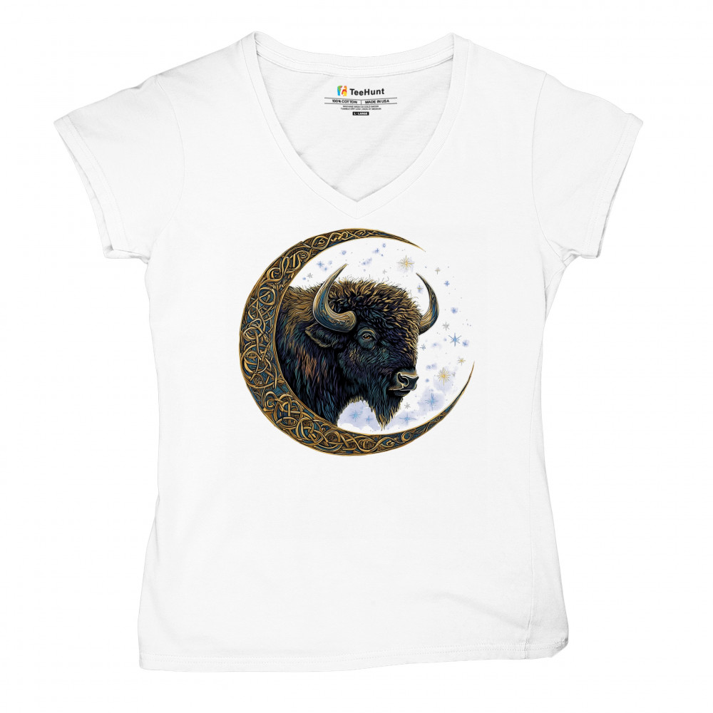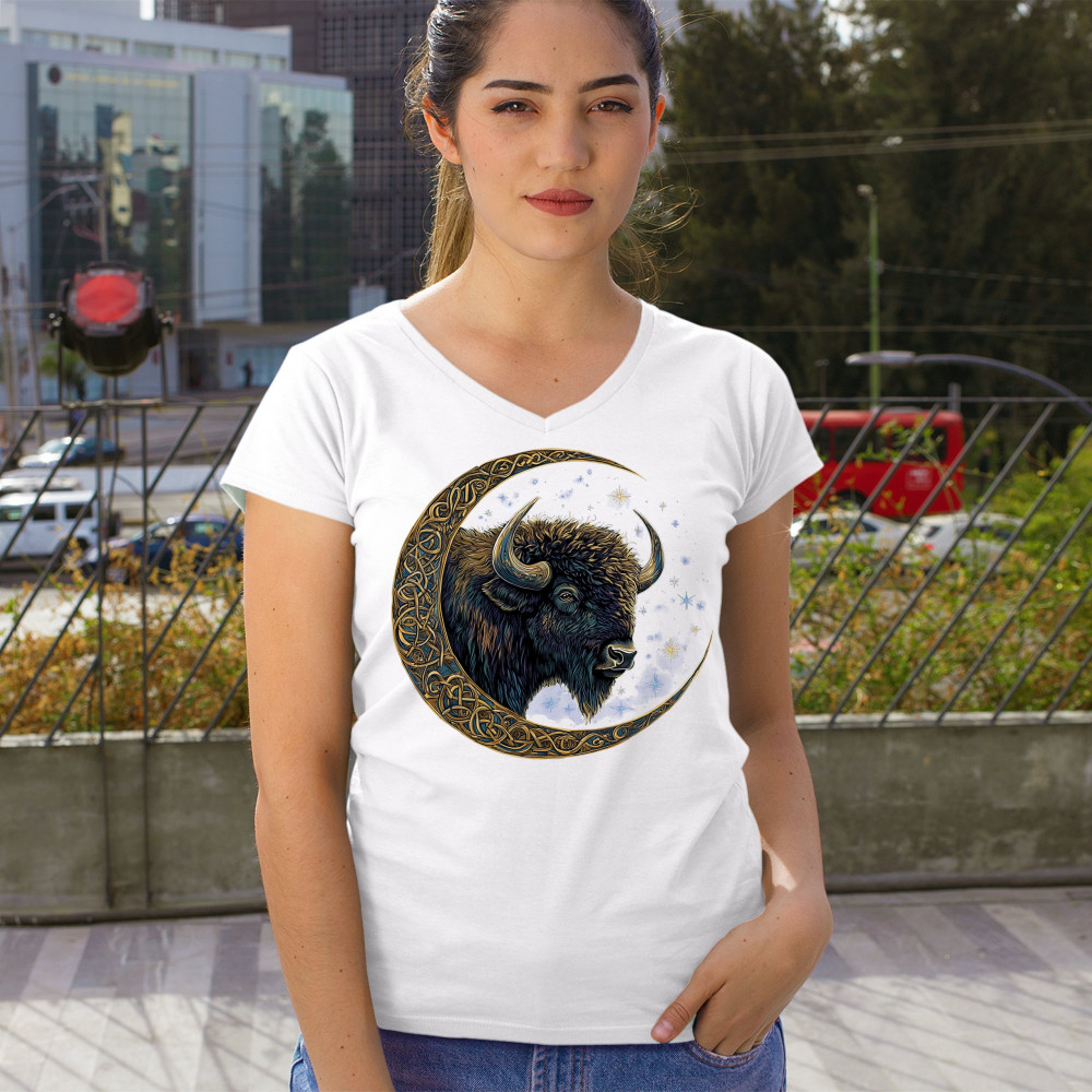 Mystical bison in Celtic moon—perfect for spiritual seekers, art fans, stargazers, and lovers of nature, tribal design, and cosmic energy.
