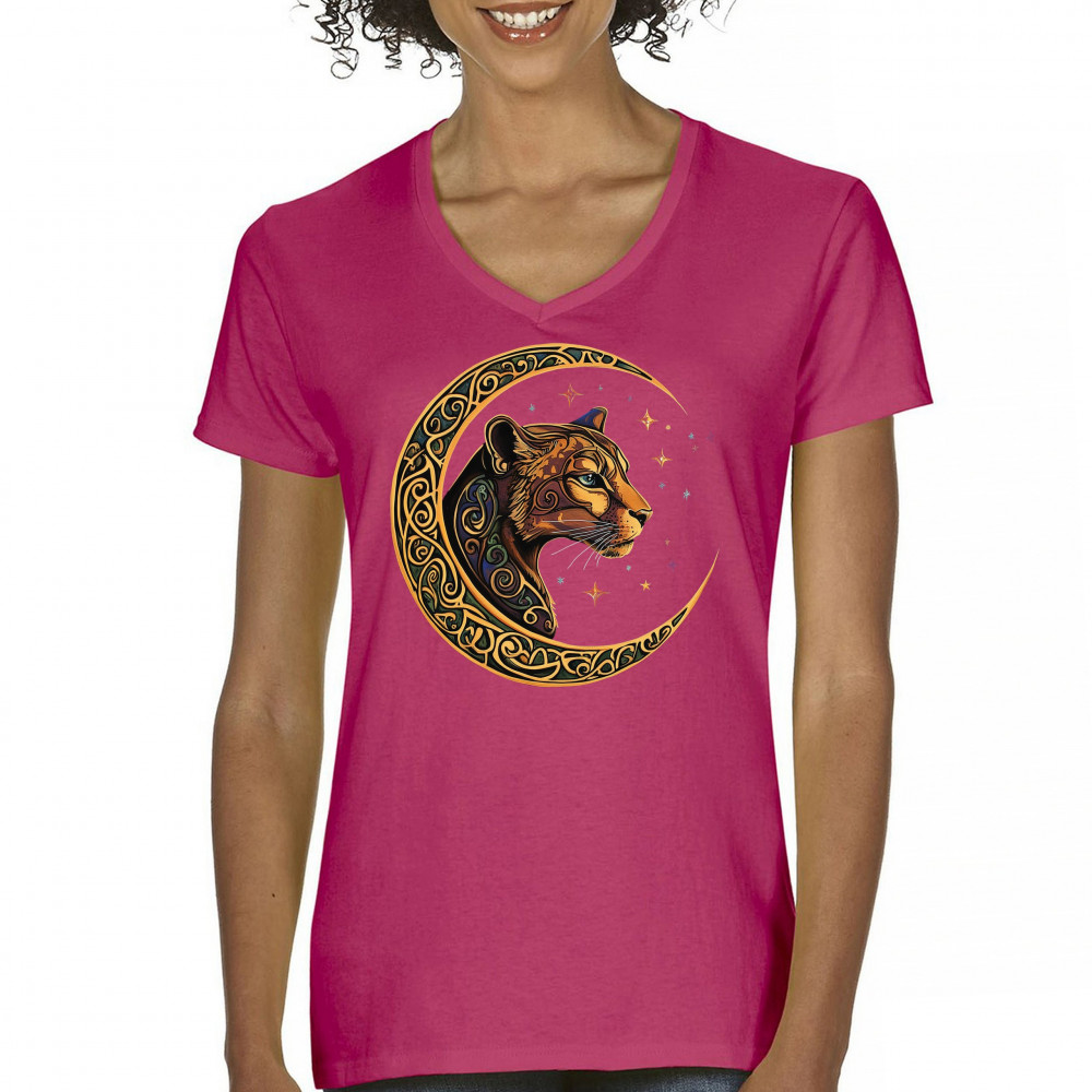 Leopard in Celtic moon with stars—mystical design for fantasy art fans, astrology lovers, and spiritual souls drawn to wild cosmic energy.
