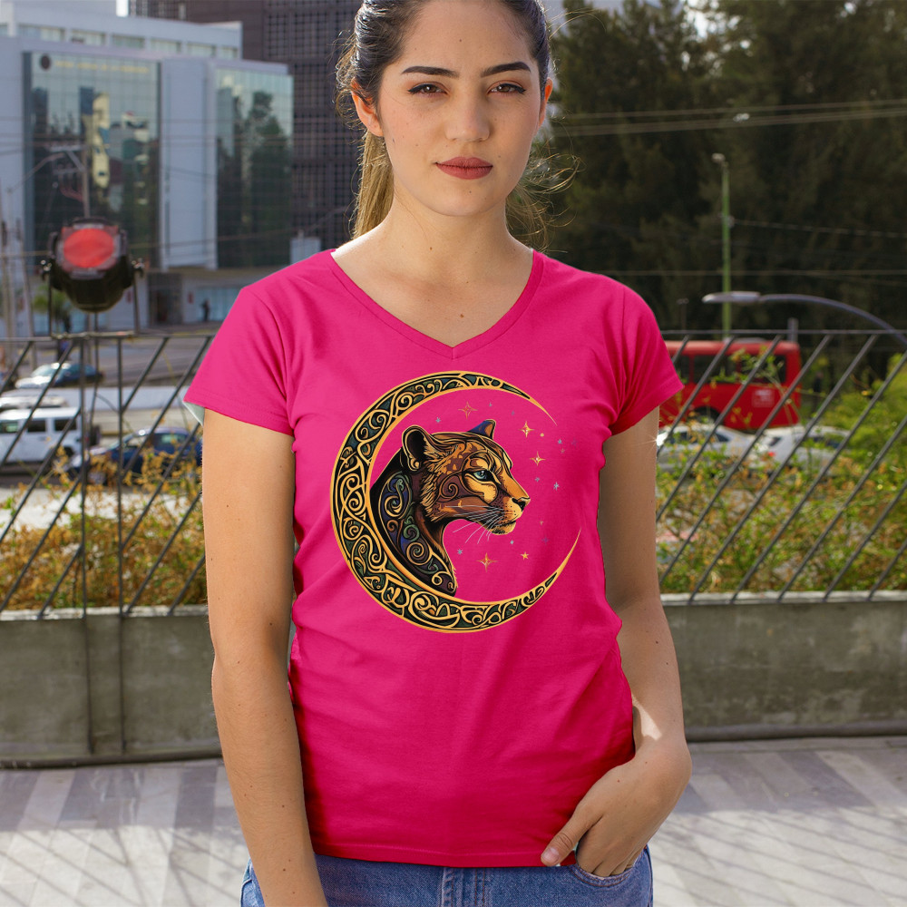 Mystical and elegant, this celestial leopard design merges wild animal strength with spiritual energy. Framed by a golden Celtic crescent moon and set against a starlit sky, it captures themes of nature, intuition, tribal symbolism, fantasy, and feminine power. Ideal for astrology fans, animal lovers, and seekers of cosmic connection.