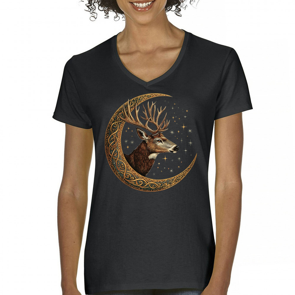 Majestic deer in Celtic moon with stars—symbol of protection, nature, and cosmic wisdom. A mystical gift for hunters, druids, and forest lovers.