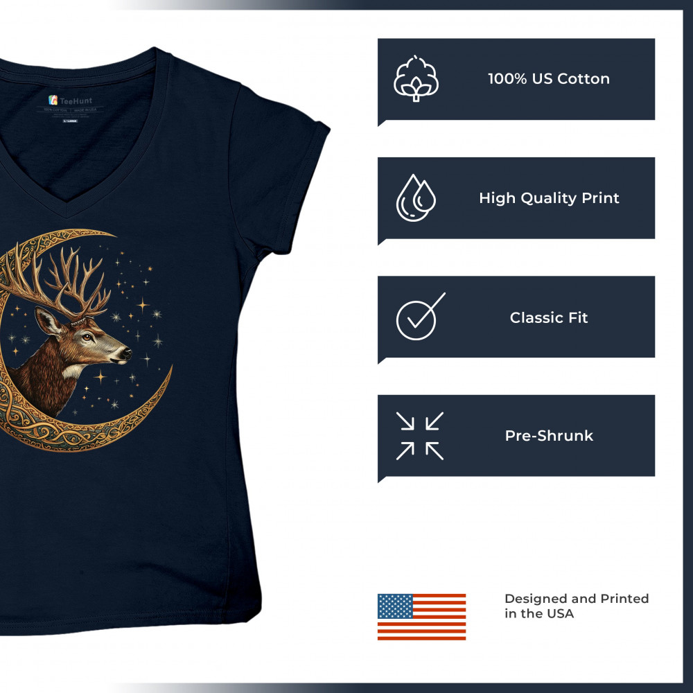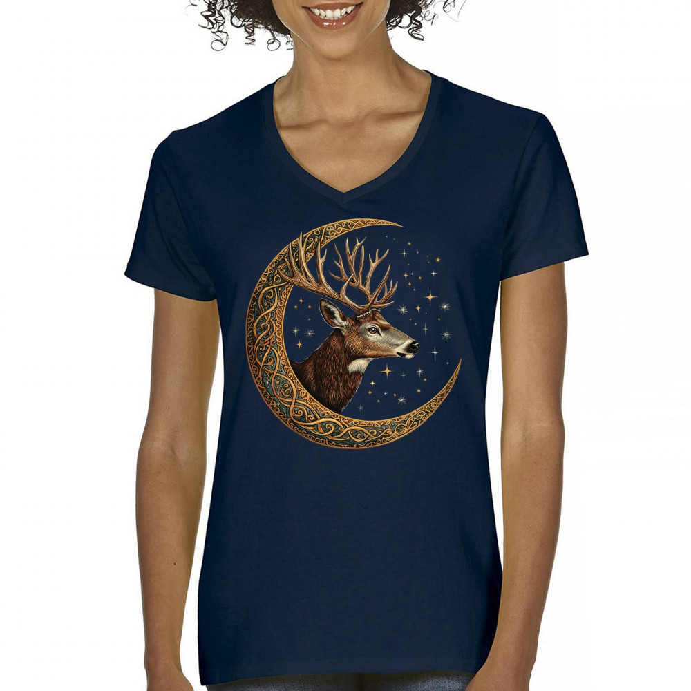 Majestic deer in Celtic moon with stars—symbol of protection, nature, and cosmic wisdom. A mystical gift for hunters, druids, and forest lovers.
