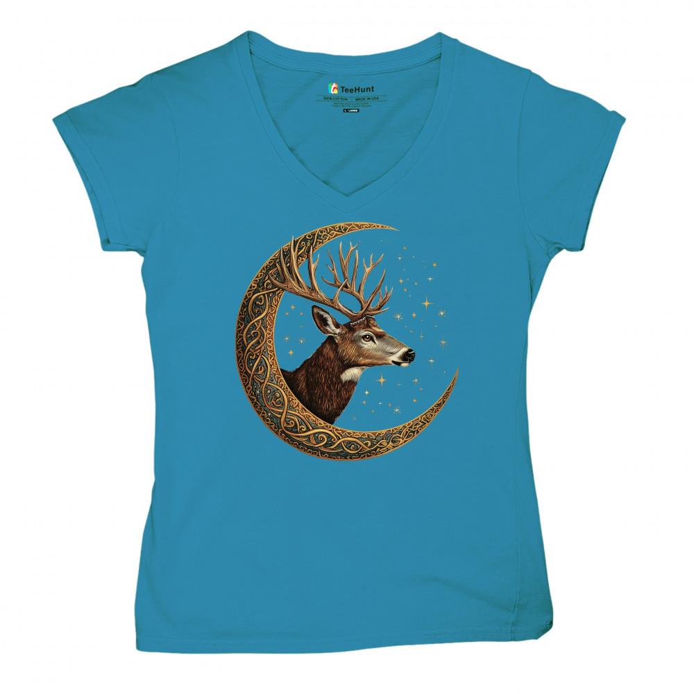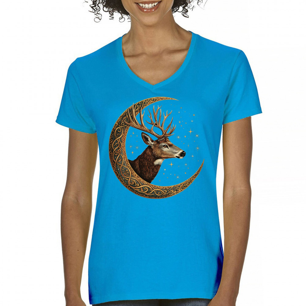 Majestic deer in Celtic moon with stars—symbol of protection, nature, and cosmic wisdom. A mystical gift for hunters, druids, and forest lovers.