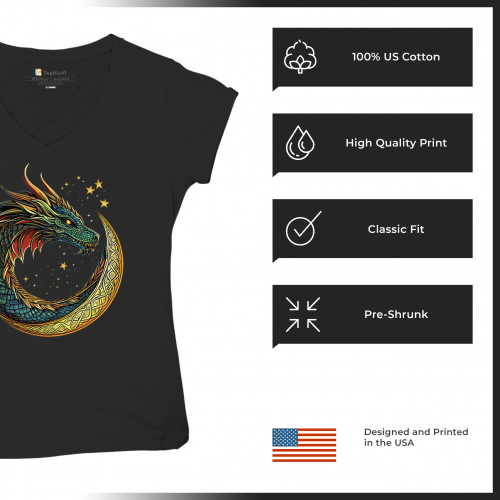 Fierce dragon in Celtic crescent moon with glowing eyes and starry sky. Perfect for fantasy fans, gamers, and spiritual warriors seeking mythic art.