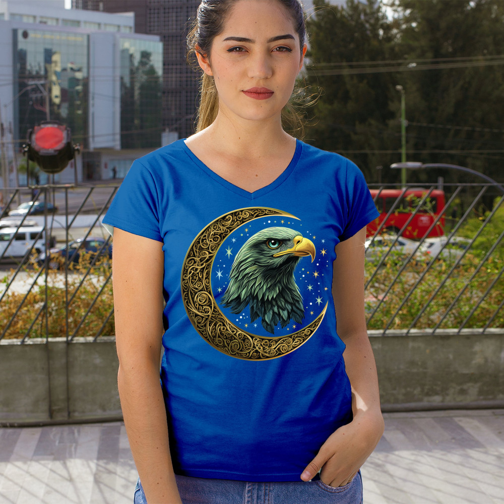 Majestic eagle in golden Celtic moon with stars—symbol of strength, vision, and freedom. Perfect for patriots, spiritual seekers, and nature lovers.
