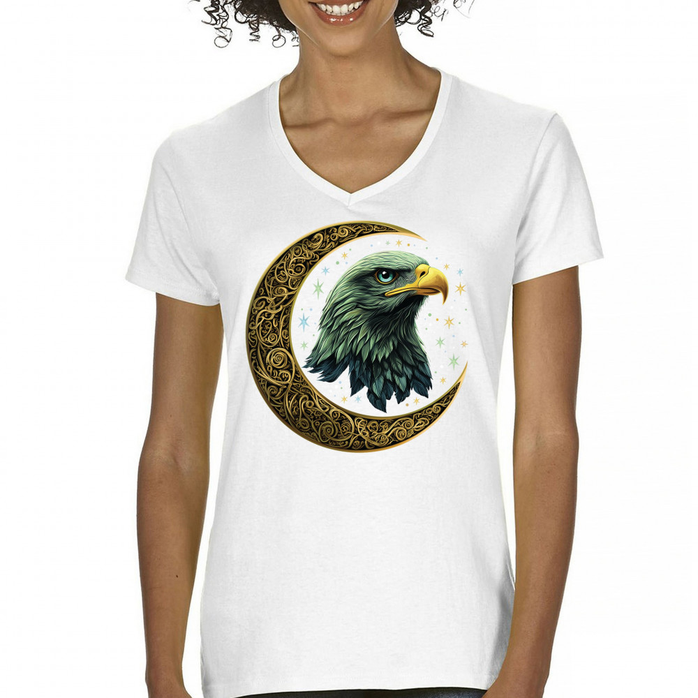 Majestic eagle in golden Celtic moon with stars—symbol of strength, vision, and freedom. Perfect for patriots, spiritual seekers, and nature lovers.