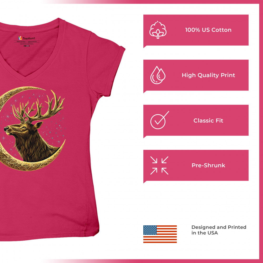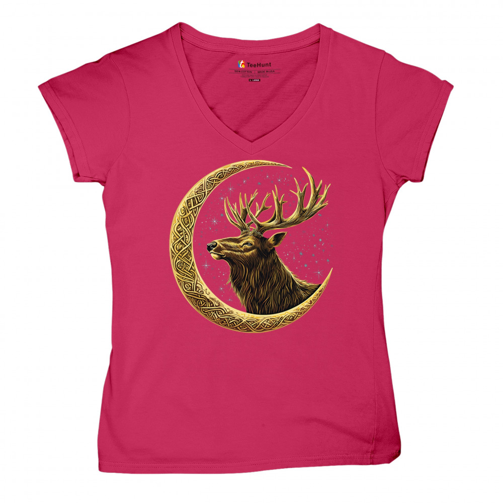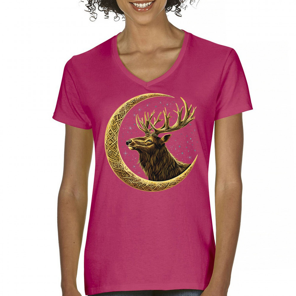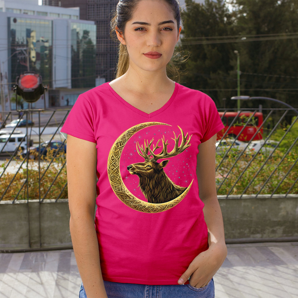 Celtic stag design with golden moon and cosmic stars. Symbolizes forest strength, leadership, and spiritual energy. Perfect for nature lovers.