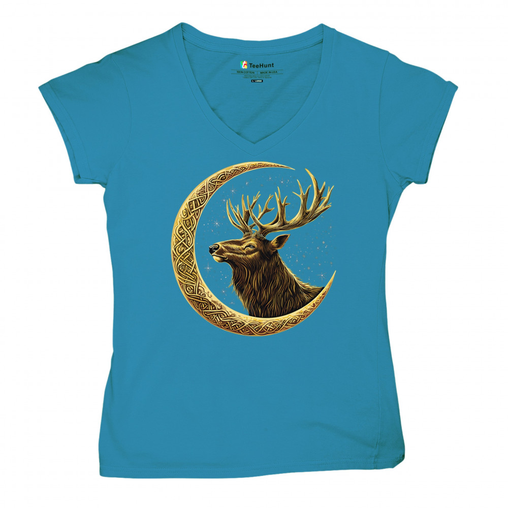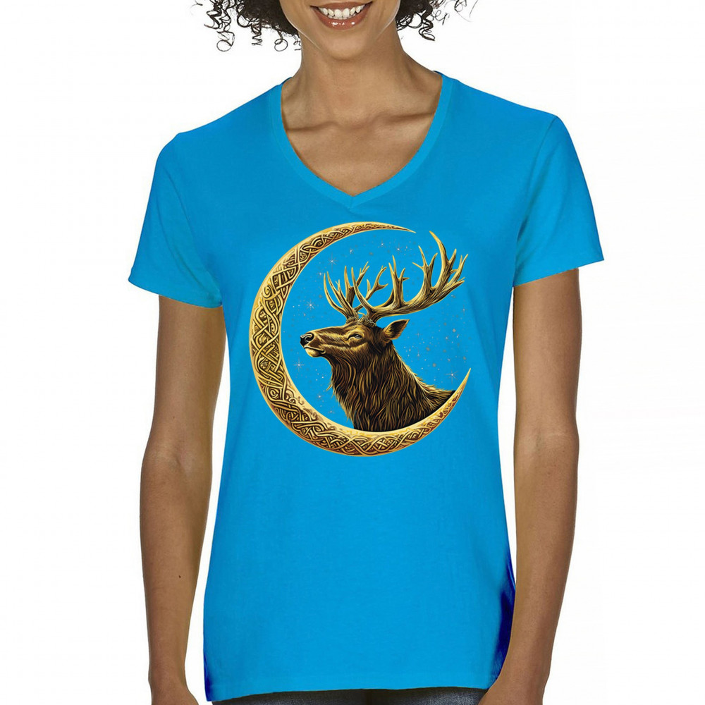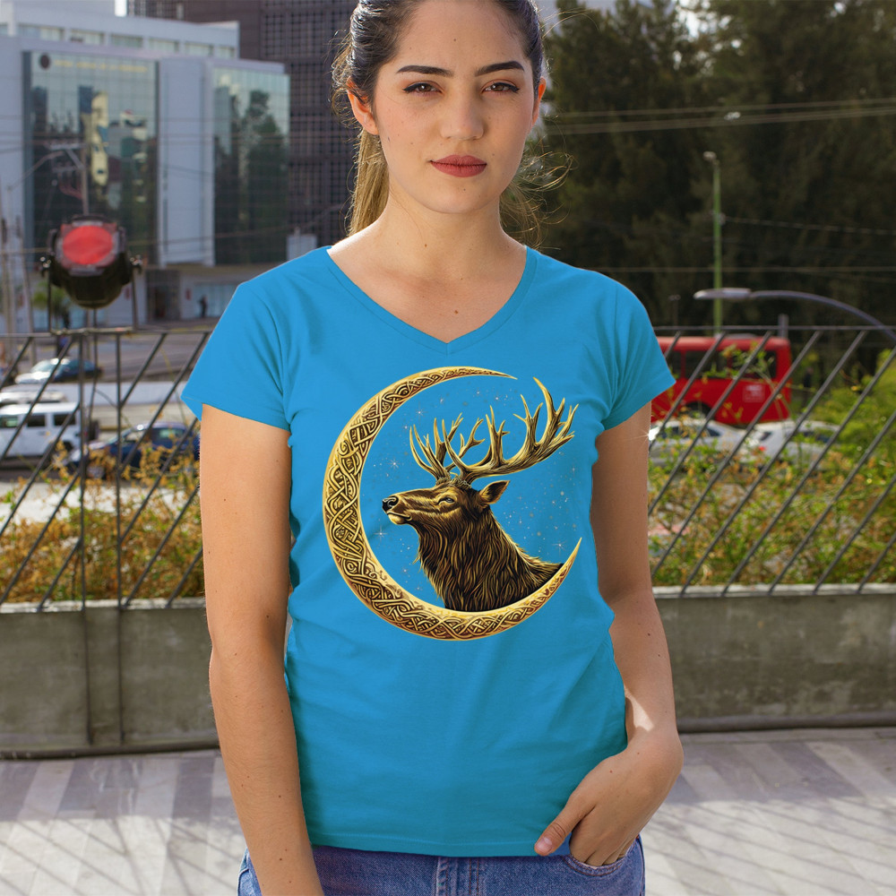 Celtic stag design with golden moon and cosmic stars. Symbolizes forest strength, leadership, and spiritual energy. Perfect for nature lovers.