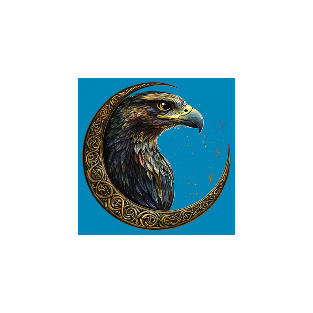 Vibrant eagle in Celtic moon with cosmic background. Represents freedom, vision, and spiritual strength—perfect for bird lovers and seekers.