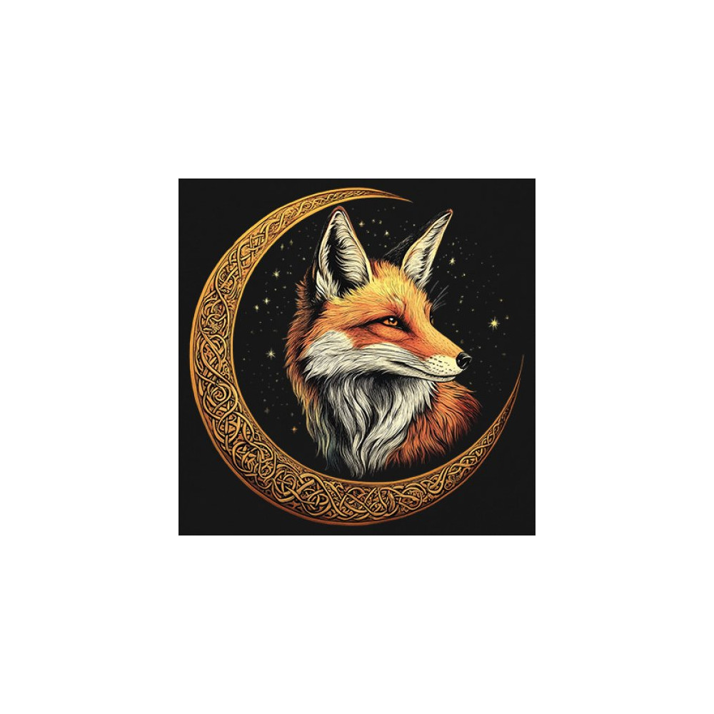 Embrace the spirit of the forest with this striking red fox framed by a golden Celtic crescent moon. The design blends animal symbolism with cosmic wonder, showcasing intuition, cleverness, and spiritual insight. A perfect match for nature lovers, folklore fans, mystics, and metaphysical art enthusiasts.