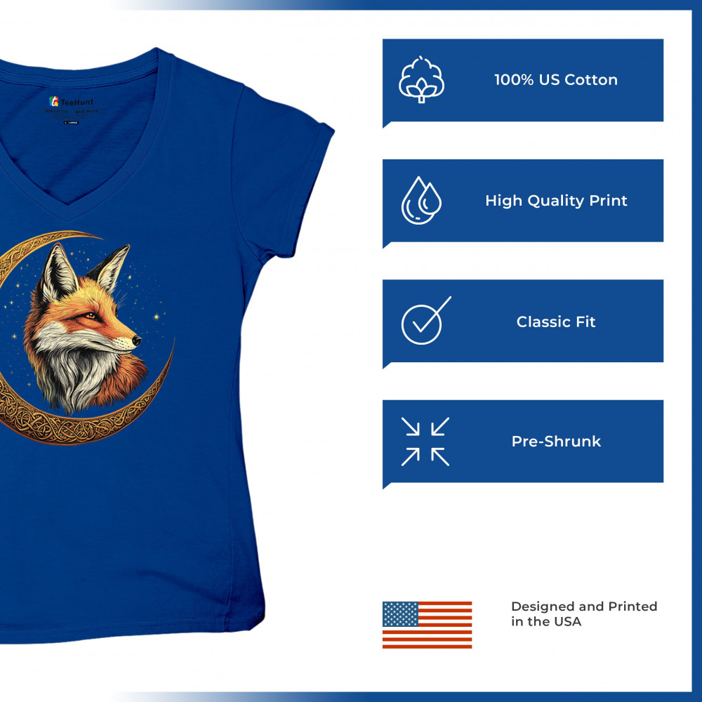 Red fox in a golden Celtic moon with stars. A mystical symbol of intuition, forest energy, and cosmic wisdom for nature lovers and mystic souls.