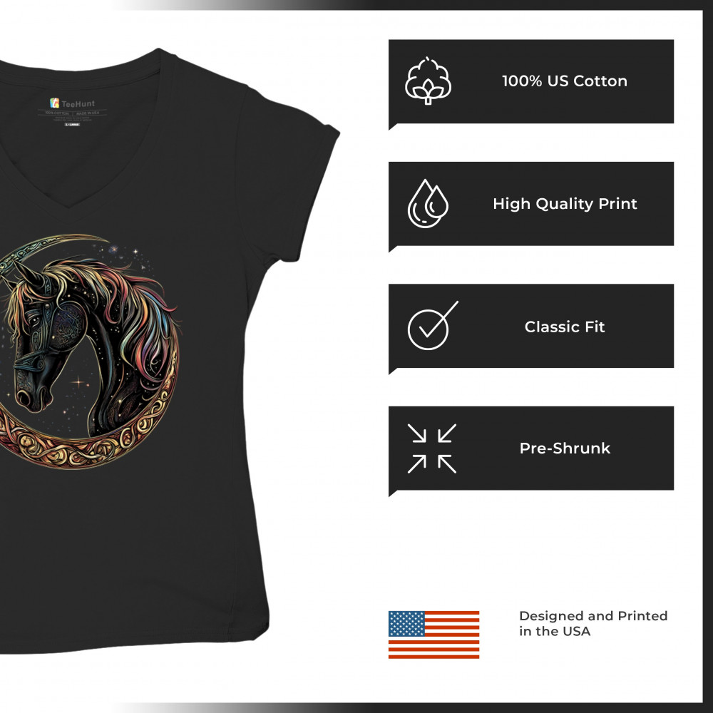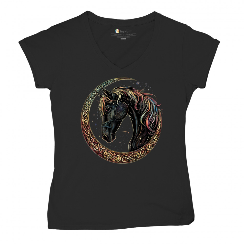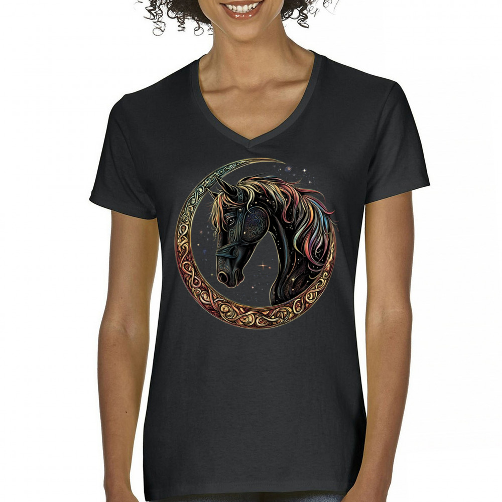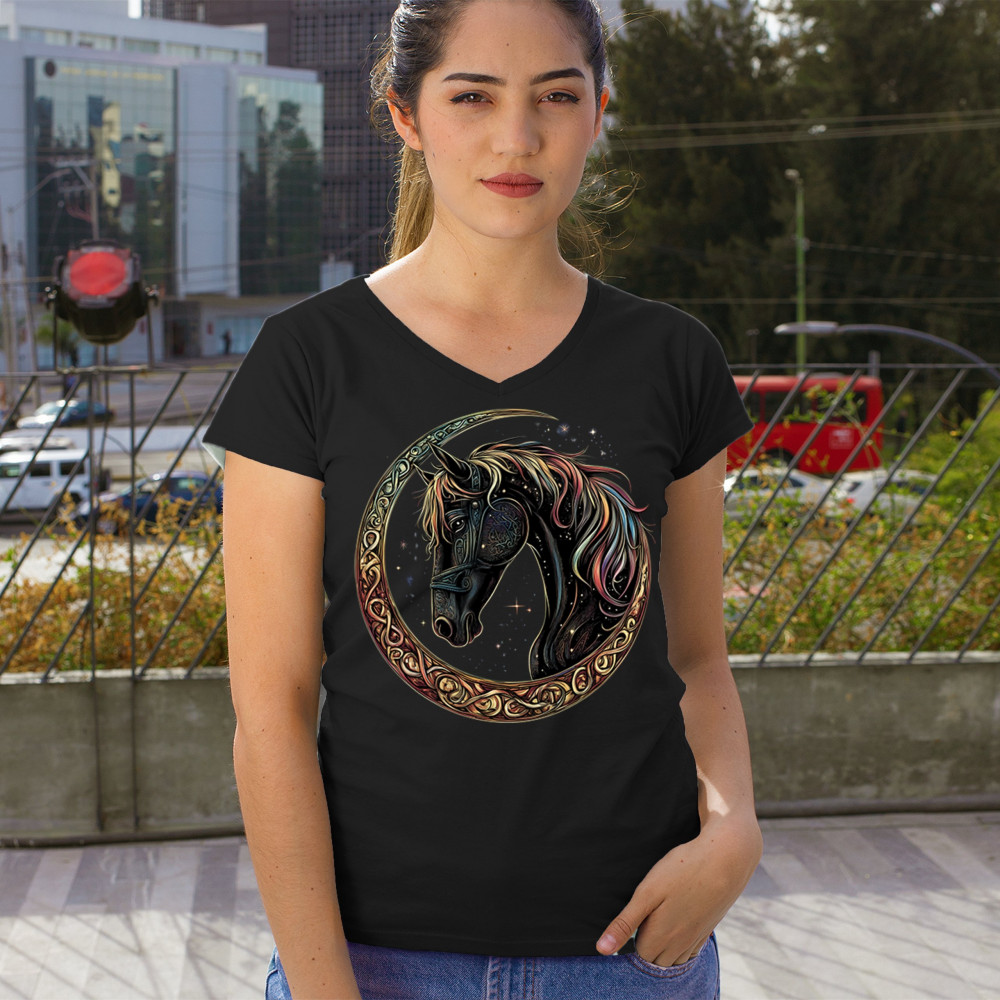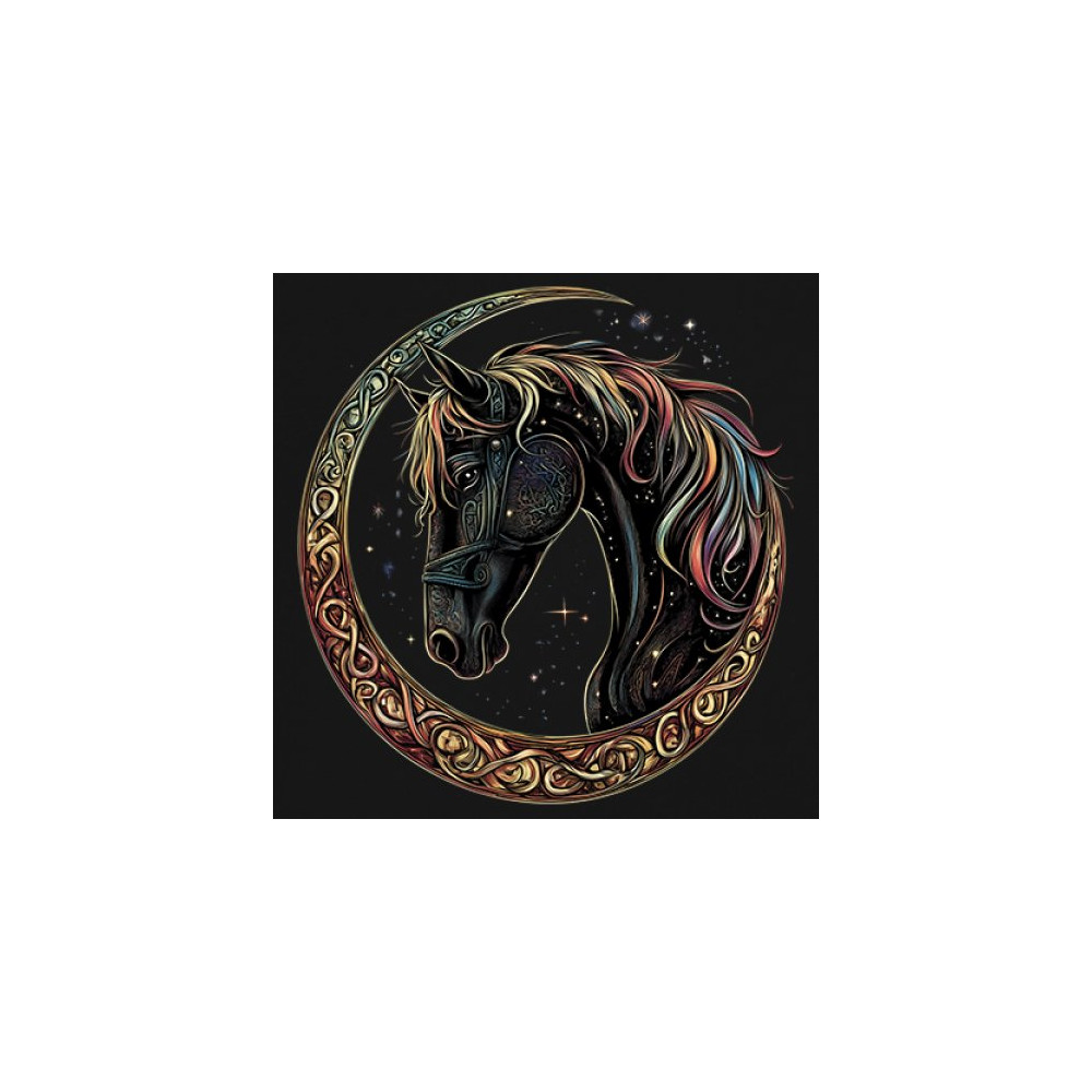 Celebrate the power and grace of the cosmos with this majestic black horse framed by a golden Celtic crescent moon. Its rainbow mane and celestial body symbolize strength, movement, mystery, and spiritual magic. A stunning piece for fantasy fans, equestrians, and dreamers who love horses and stars.