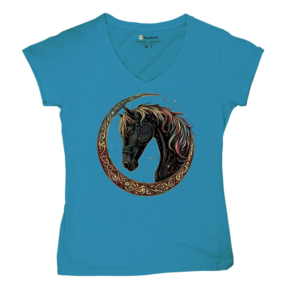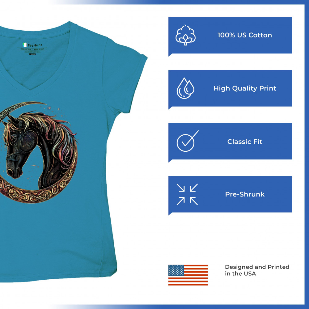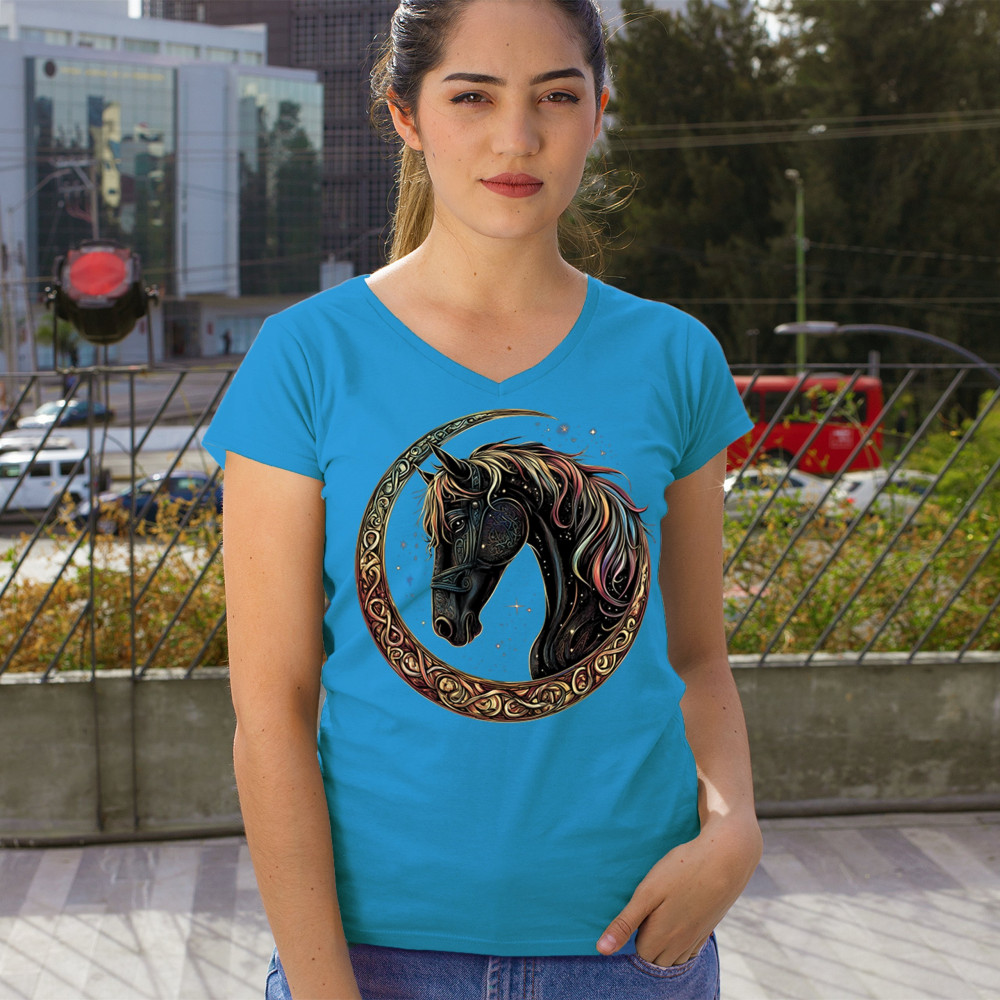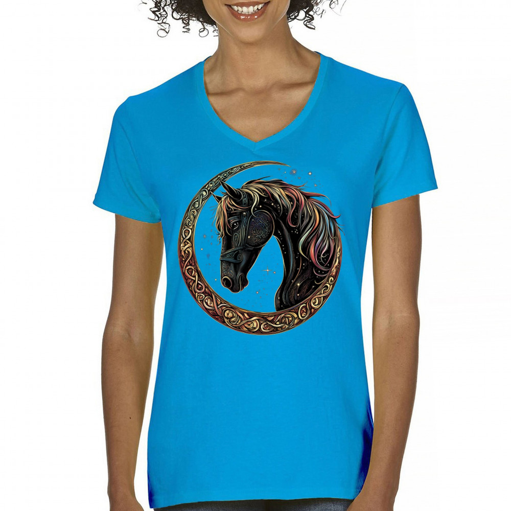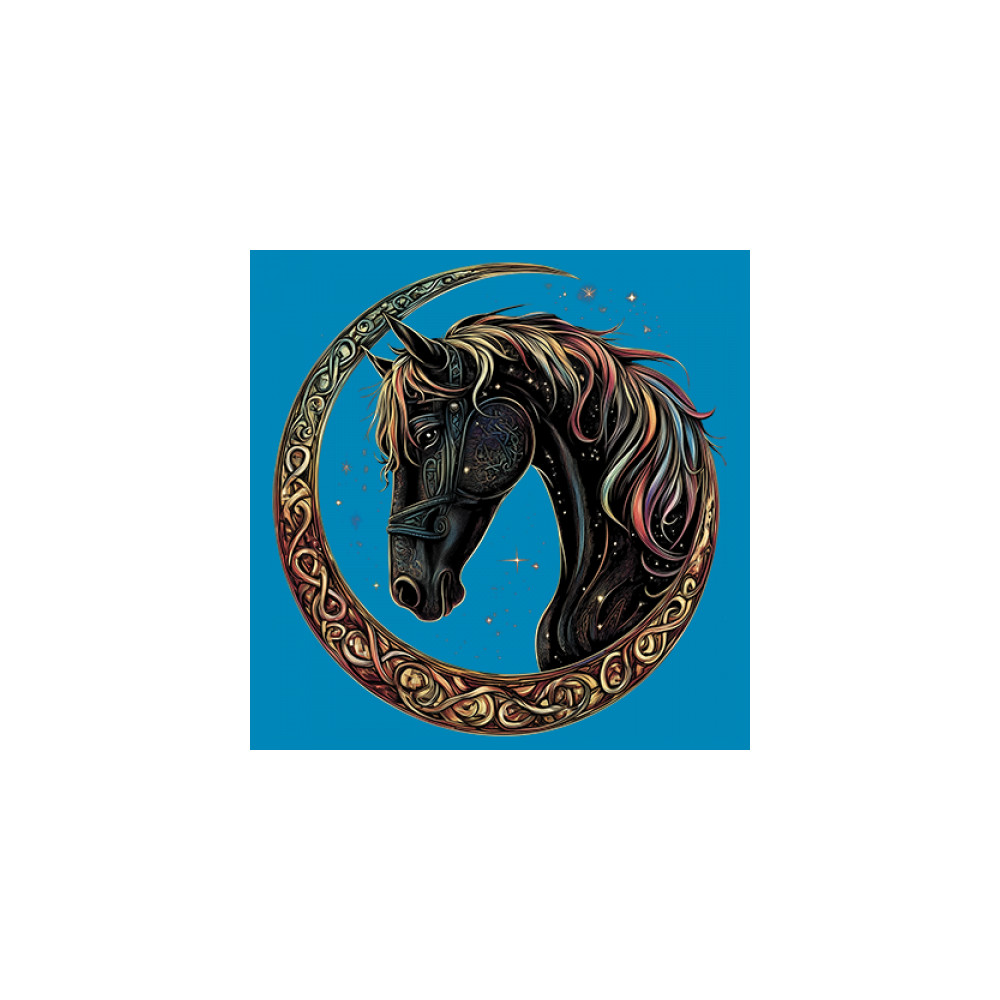 Celebrate the power and grace of the cosmos with this majestic black horse framed by a golden Celtic crescent moon. Its rainbow mane and celestial body symbolize strength, movement, mystery, and spiritual magic. A stunning piece for fantasy fans, equestrians, and dreamers who love horses and stars.