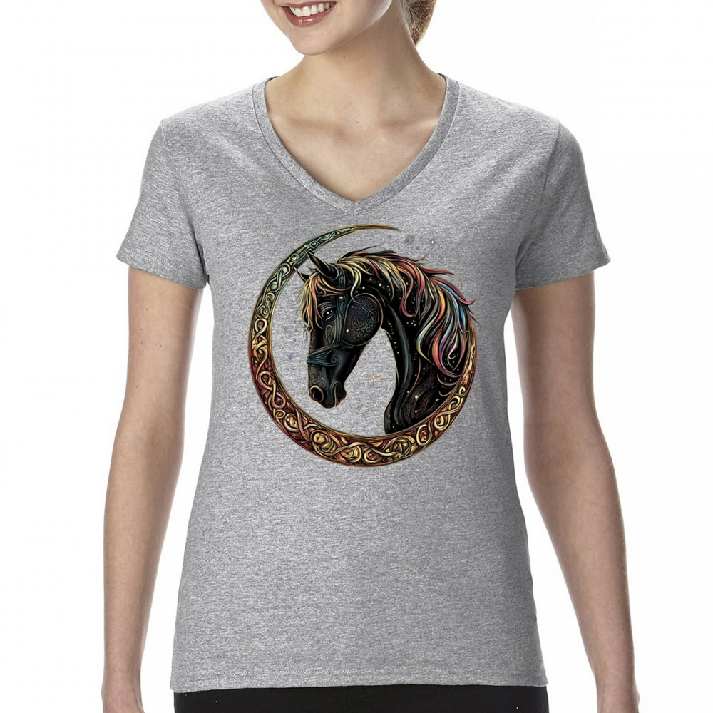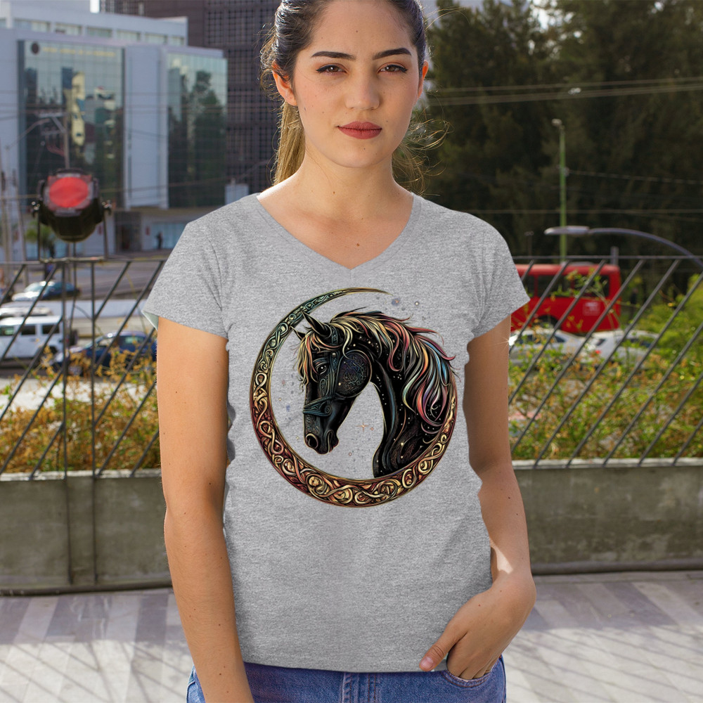 Celebrate the power and grace of the cosmos with this majestic black horse framed by a golden Celtic crescent moon. Its rainbow mane and celestial body symbolize strength, movement, mystery, and spiritual magic. A stunning piece for fantasy fans, equestrians, and dreamers who love horses and stars.