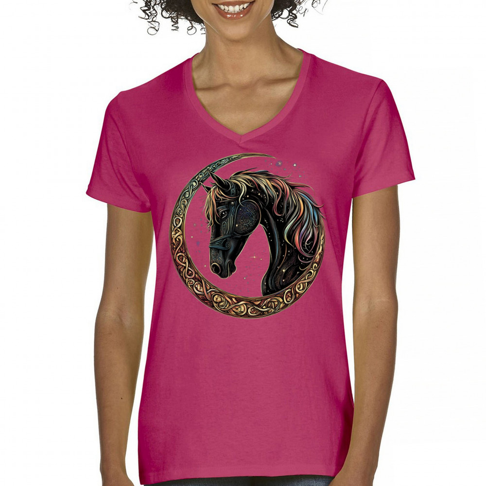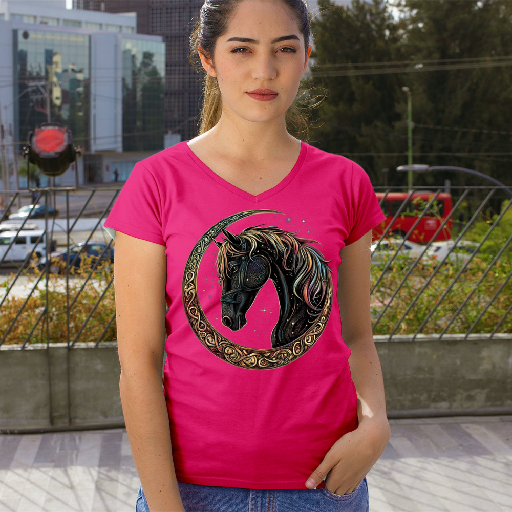 Celebrate the power and grace of the cosmos with this majestic black horse framed by a golden Celtic crescent moon. Its rainbow mane and celestial body symbolize strength, movement, mystery, and spiritual magic. A stunning piece for fantasy fans, equestrians, and dreamers who love horses and stars.