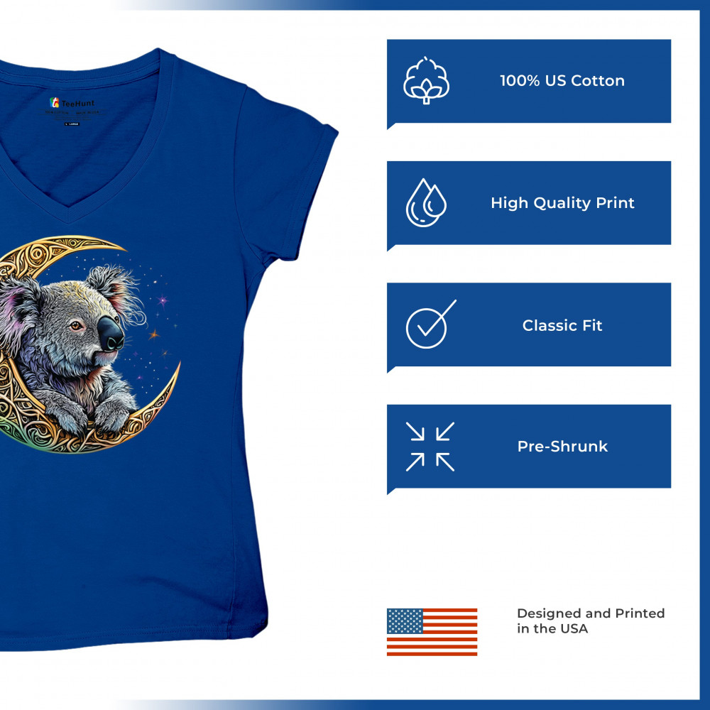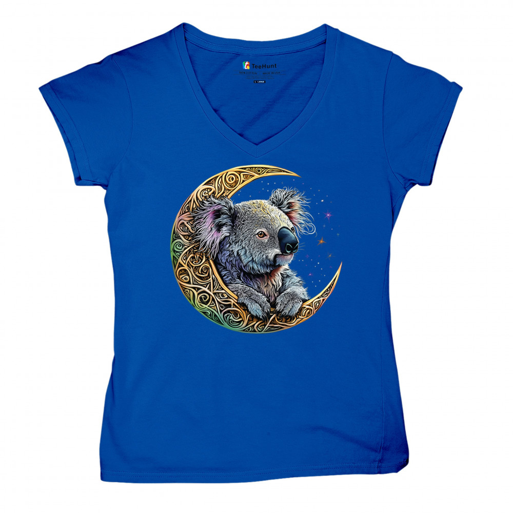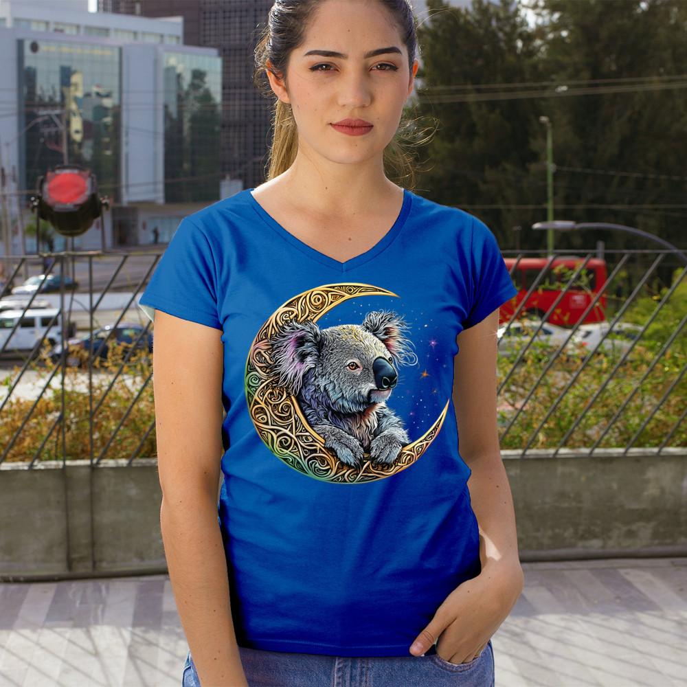 Koala resting in Celtic crescent moon with cosmic sky. A peaceful design for nature lovers, spiritual thinkers, and fantasy art fans.