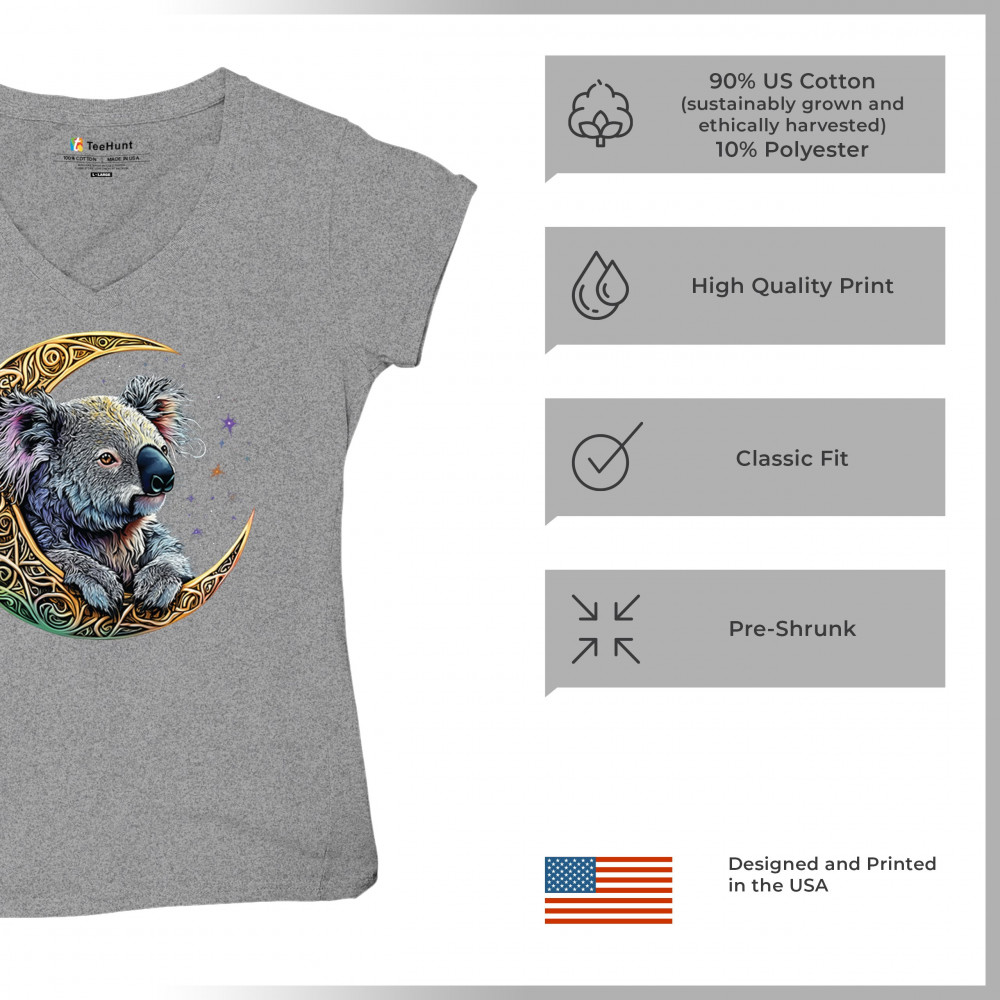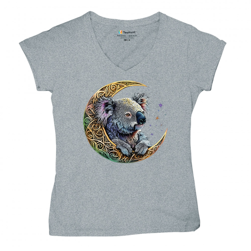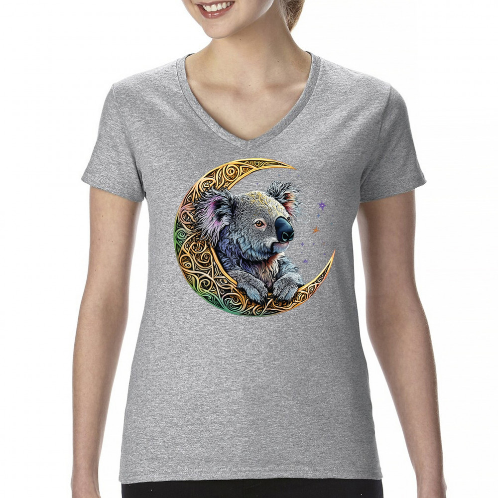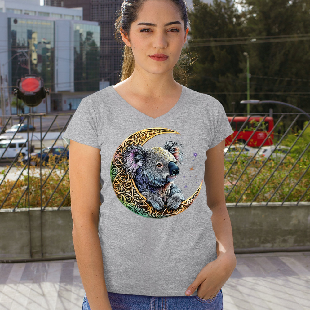 Koala resting in Celtic crescent moon with cosmic sky. A peaceful design for nature lovers, spiritual thinkers, and fantasy art fans.