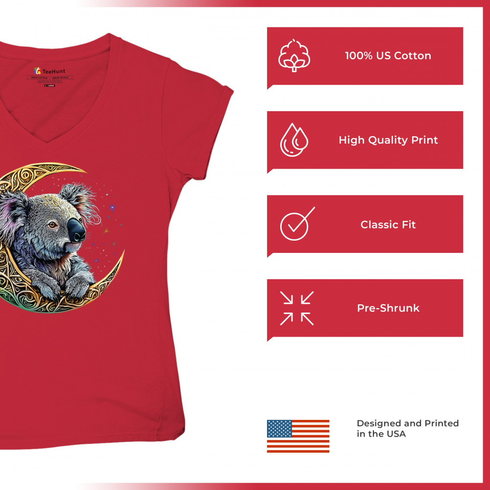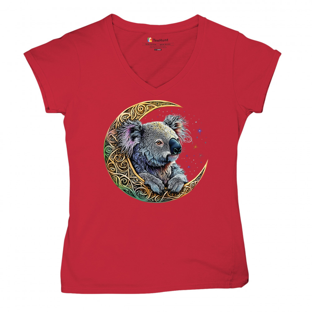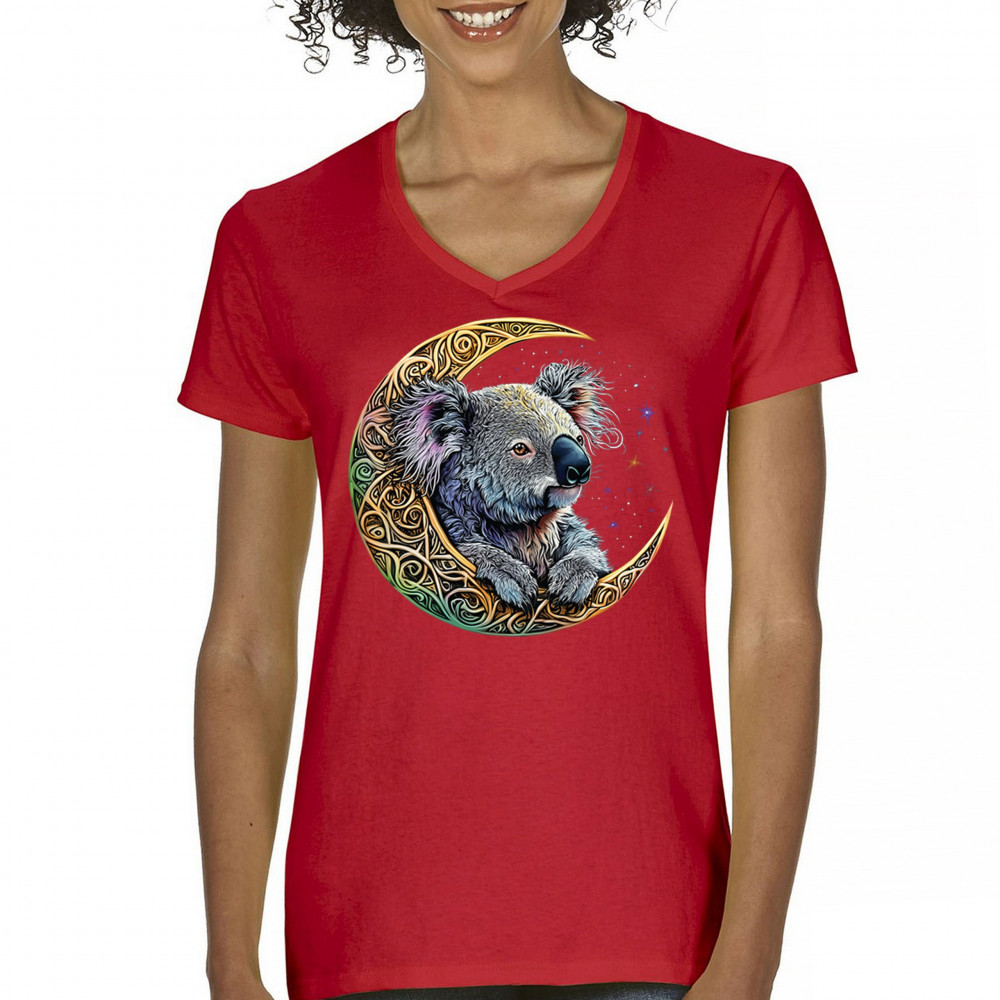 Koala resting in Celtic crescent moon with cosmic sky. A peaceful design for nature lovers, spiritual thinkers, and fantasy art fans.