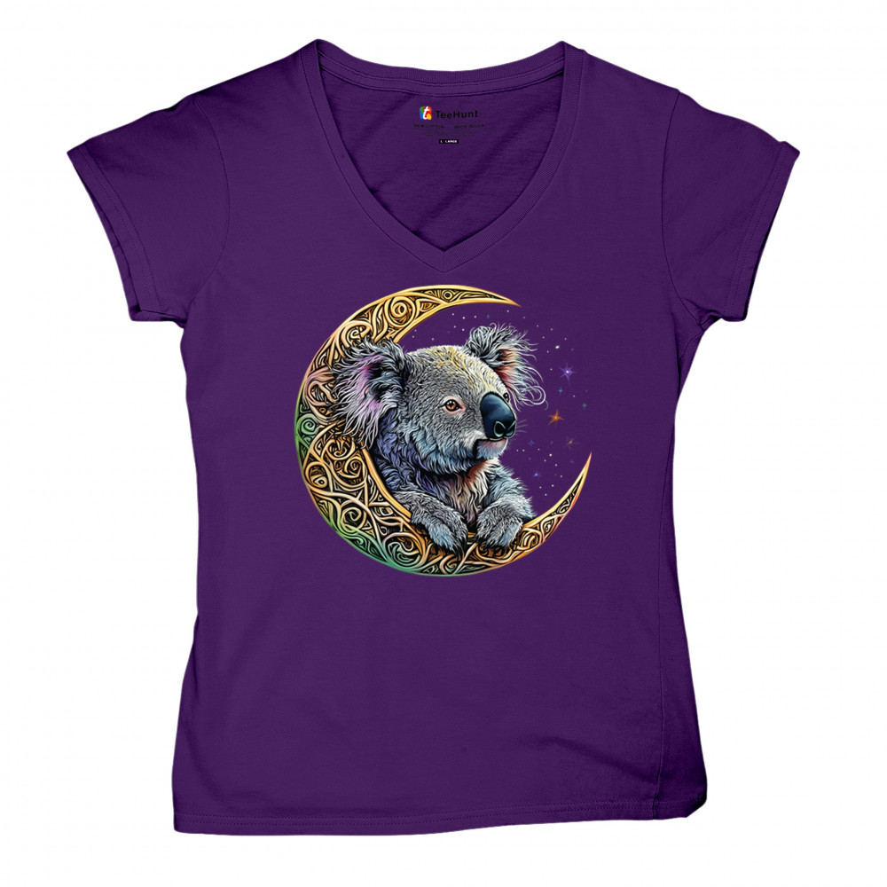 Koala resting in Celtic crescent moon with cosmic sky. A peaceful design for nature lovers, spiritual thinkers, and fantasy art fans.