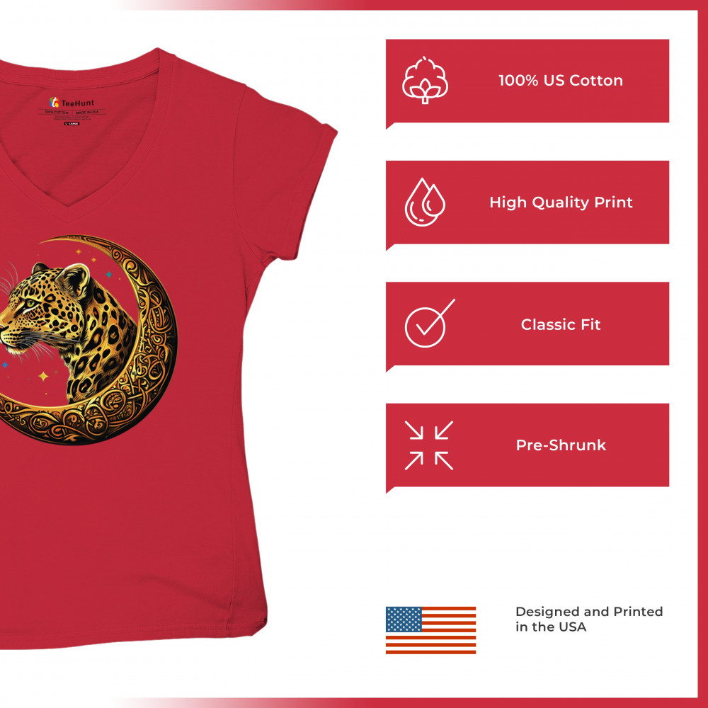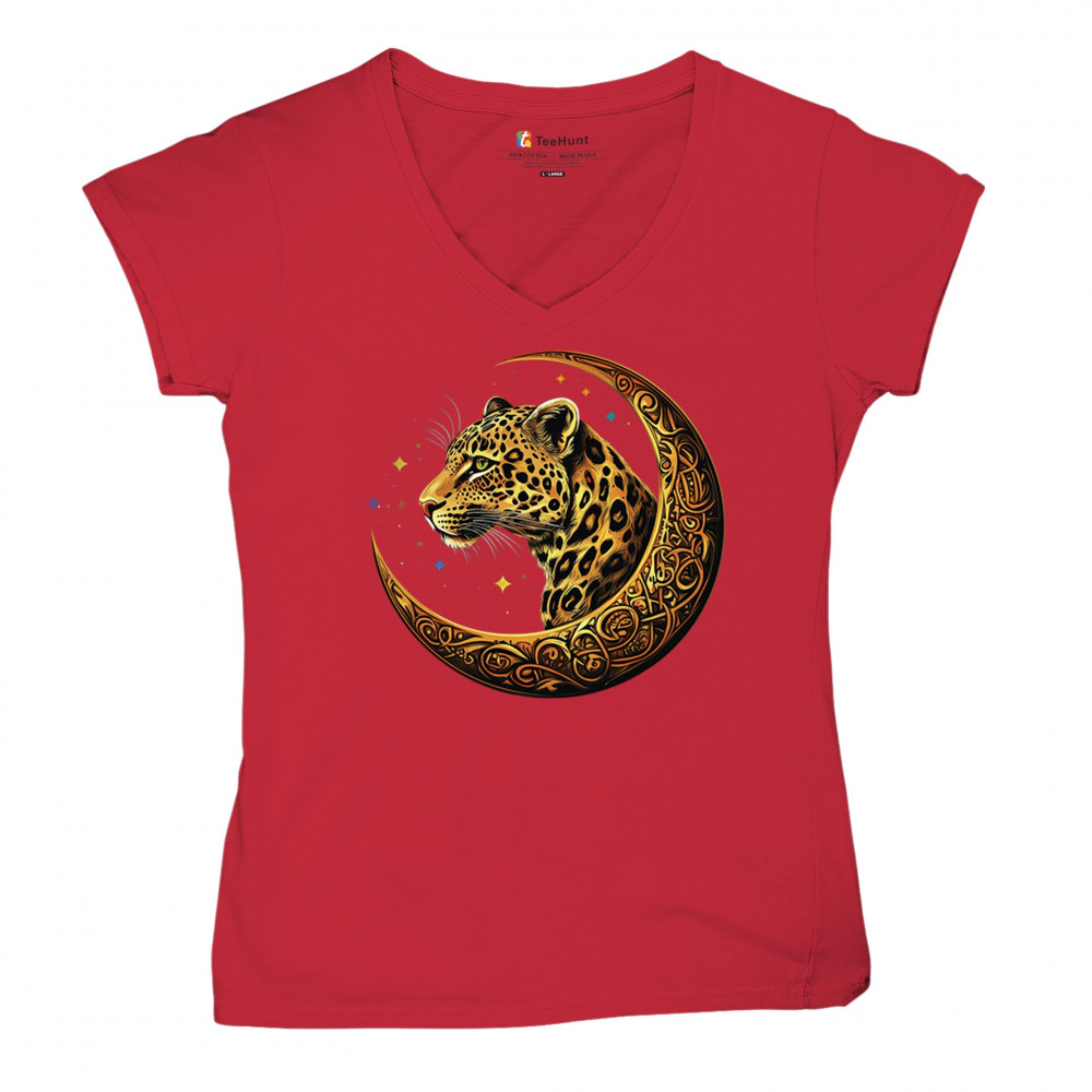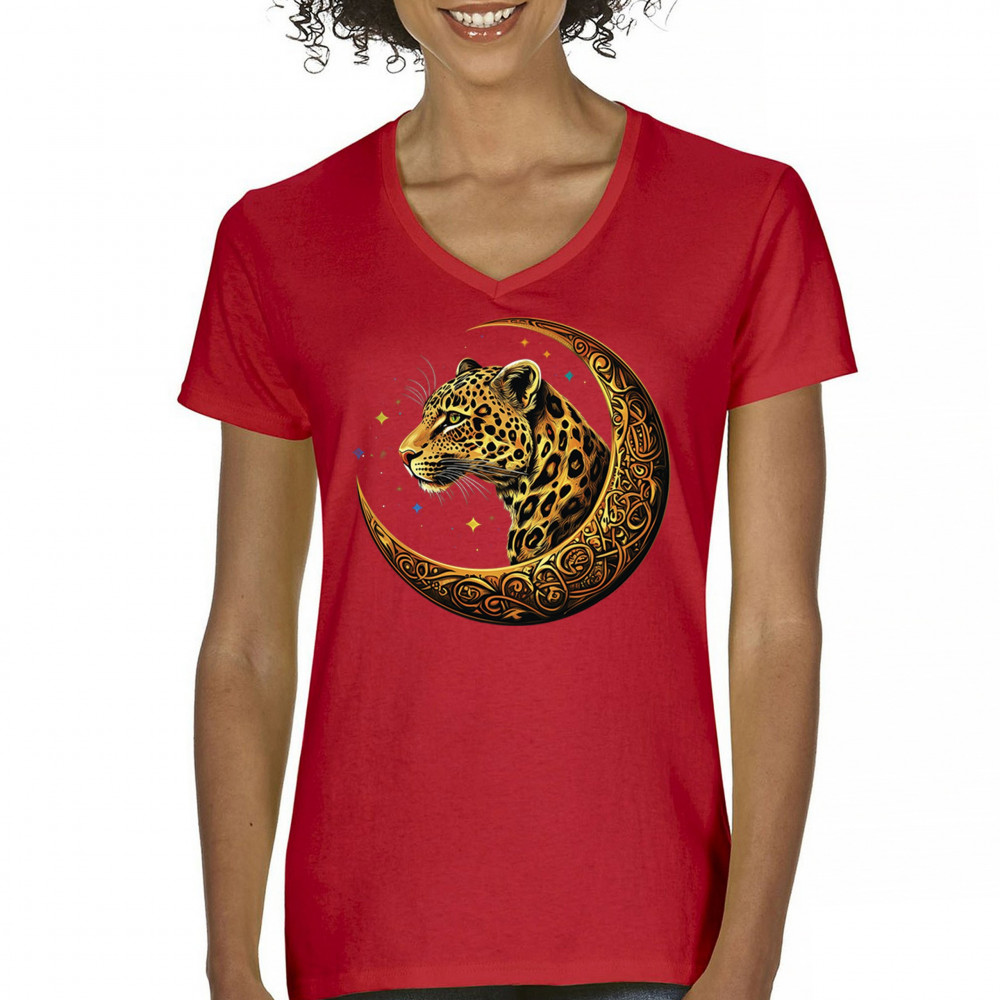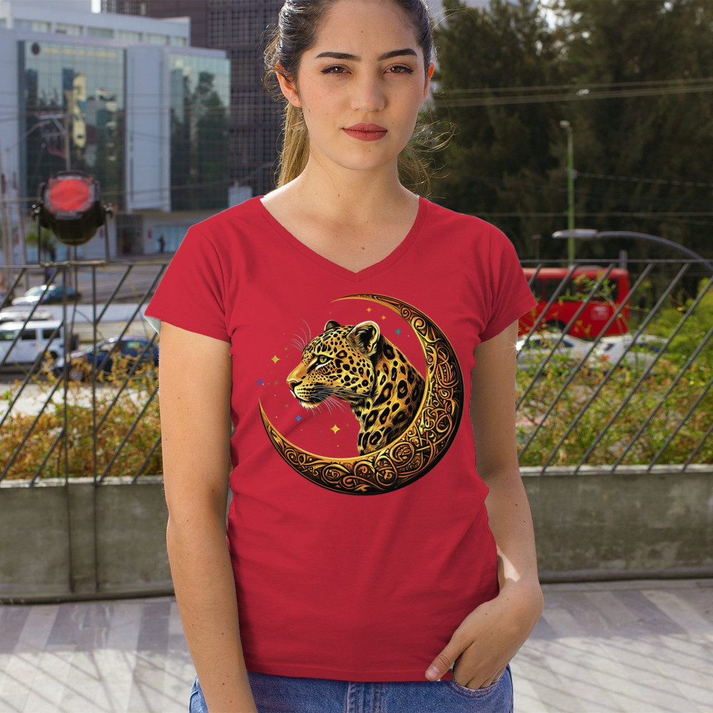 Leopard in Celtic moon with cosmic background. A fierce and spiritual design for big cat lovers, jungle fans, mystics, and fantasy art seekers.