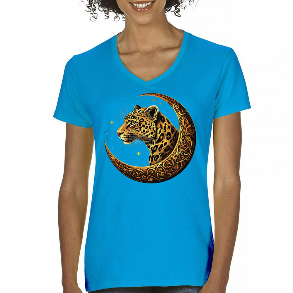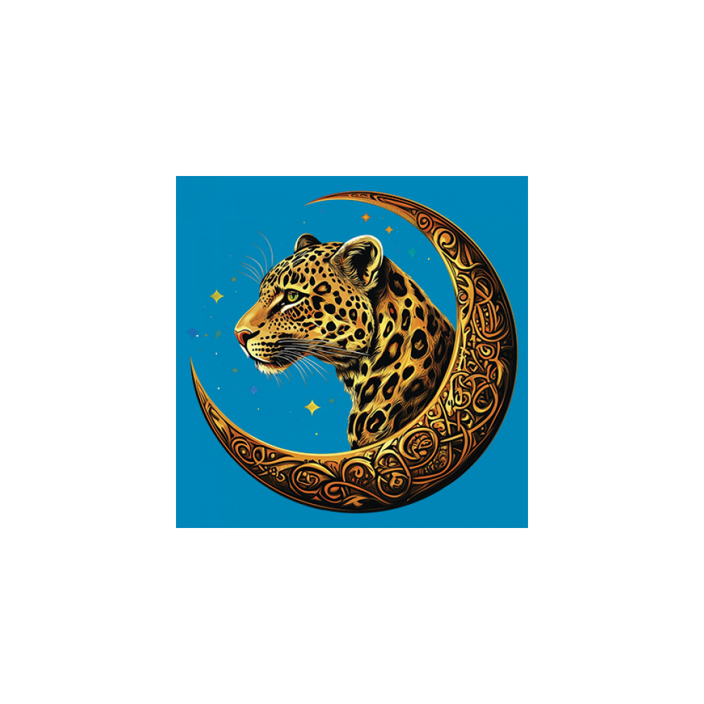 Unleash wild energy and spiritual symbolism with this bold leopard design set inside a golden Celtic crescent moon. A cosmic starry background amplifies its mystical vibe, symbolizing agility, independence, and awareness. Perfect for big cat lovers, jungle animal fans, and seekers of fantasy or tribal-inspired art.