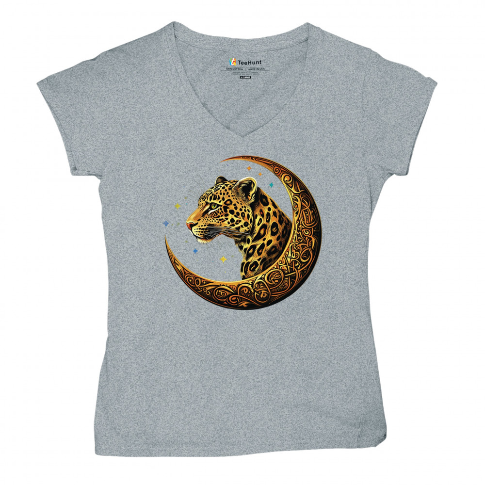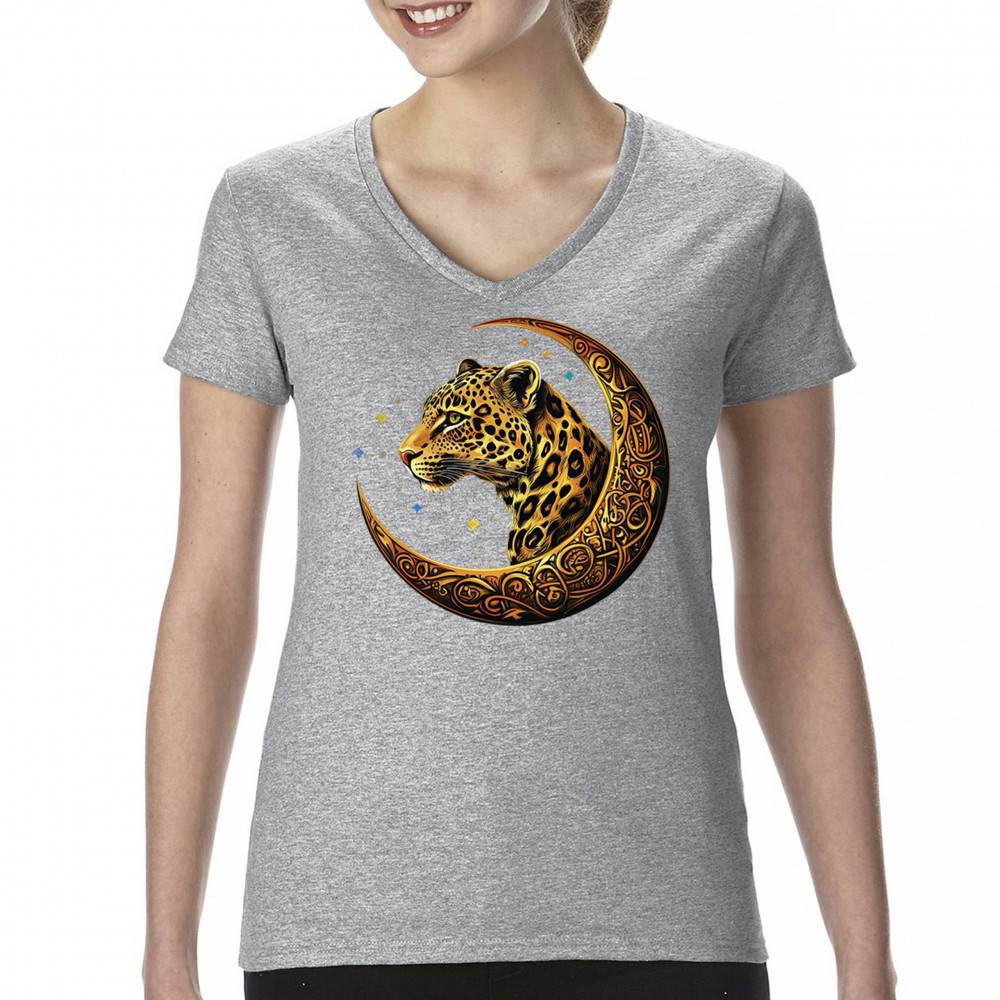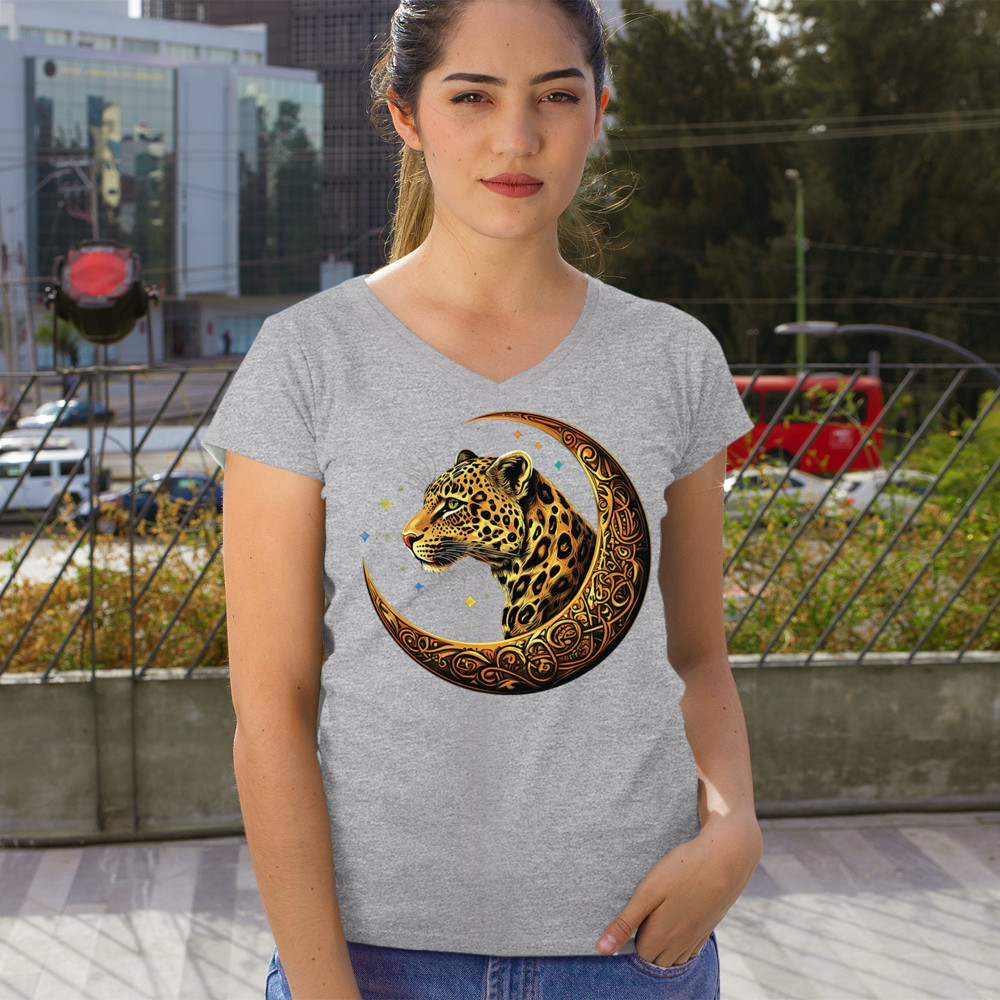 Leopard in Celtic moon with cosmic background. A fierce and spiritual design for big cat lovers, jungle fans, mystics, and fantasy art seekers.