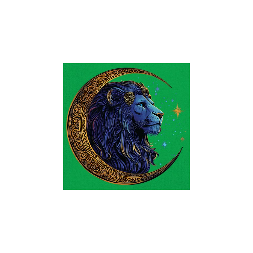 This celestial lion design features a majestic mane framed by a golden Celtic crescent moon, symbolizing leadership, courage, and wild spirit. Perfect for Leo zodiac signs, mystic seekers, and fantasy fans, this artwork blends tribal symbolism, cosmic energy, and regal power in one visually stunning tribute to inner strength.