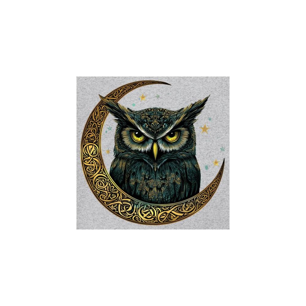 Cosmic owl in Celtic crescent moon—symbol of wisdom, night mystery, and spirit. Perfect for mystics, owl lovers, and fantasy fans.