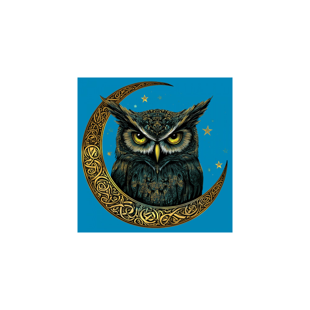 Cosmic owl in Celtic crescent moon—symbol of wisdom, night mystery, and spirit. Perfect for mystics, owl lovers, and fantasy fans.
