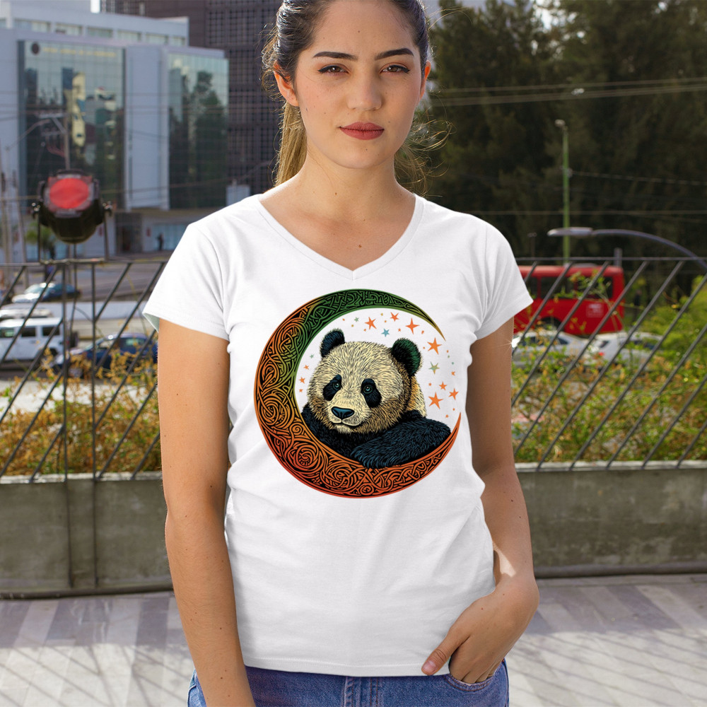 Peaceful panda in Celtic crescent moon design—symbol of harmony, balance, and spiritual calm for nature lovers, mystics, and gentle souls.
