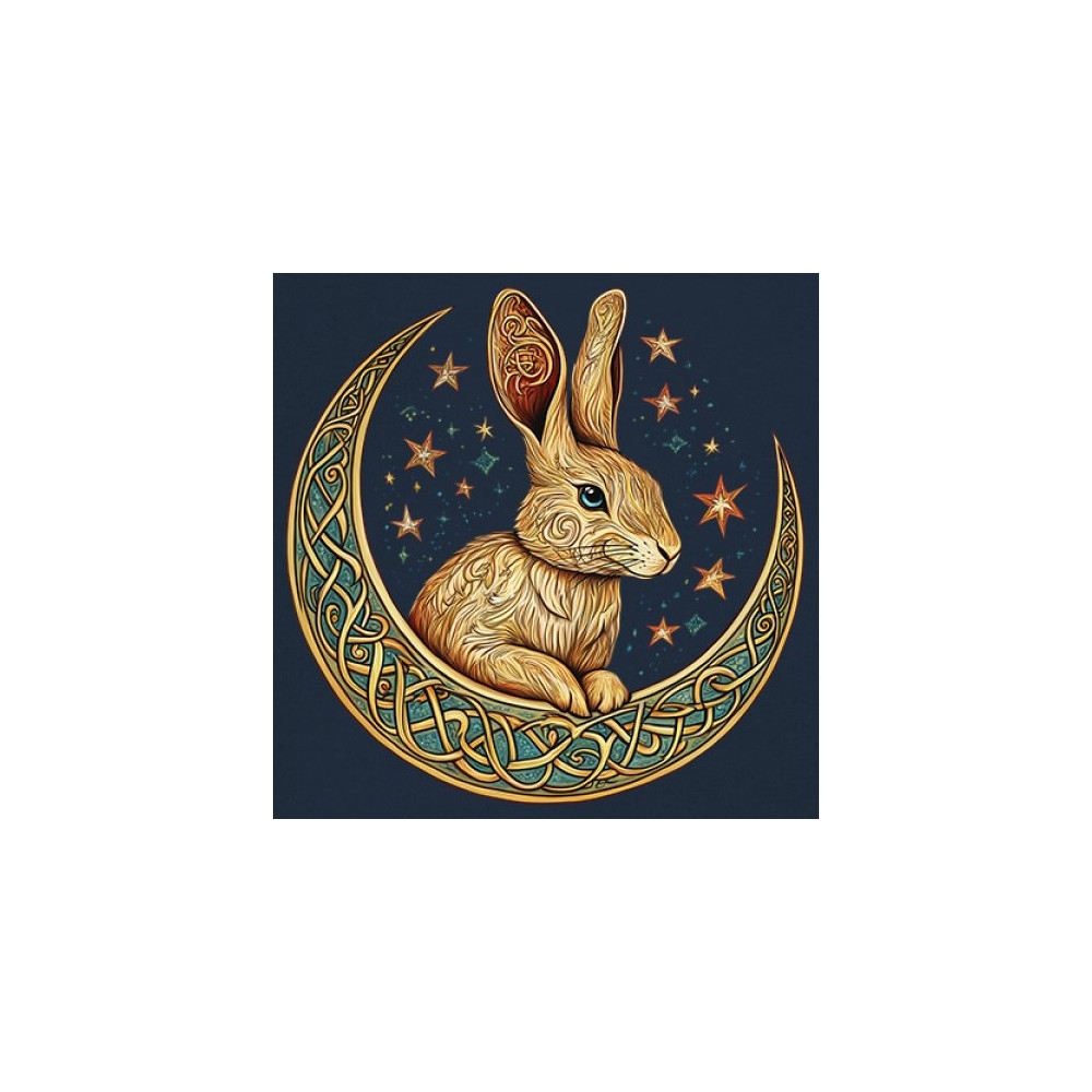 Mystical rabbit in Celtic moon—symbolizing intuition, rebirth, and spring energy. Ideal for fantasy lovers, mystics, and nature fans.