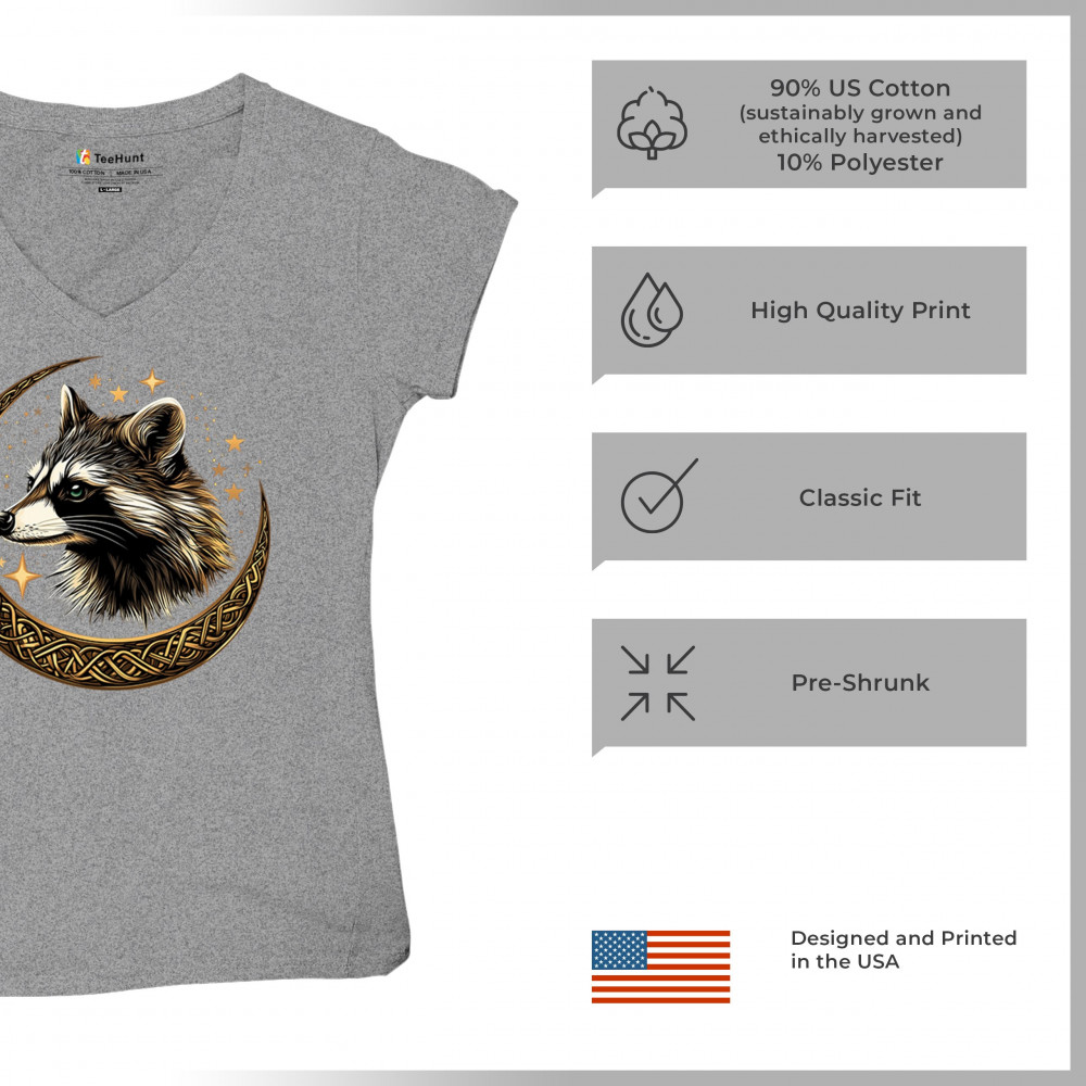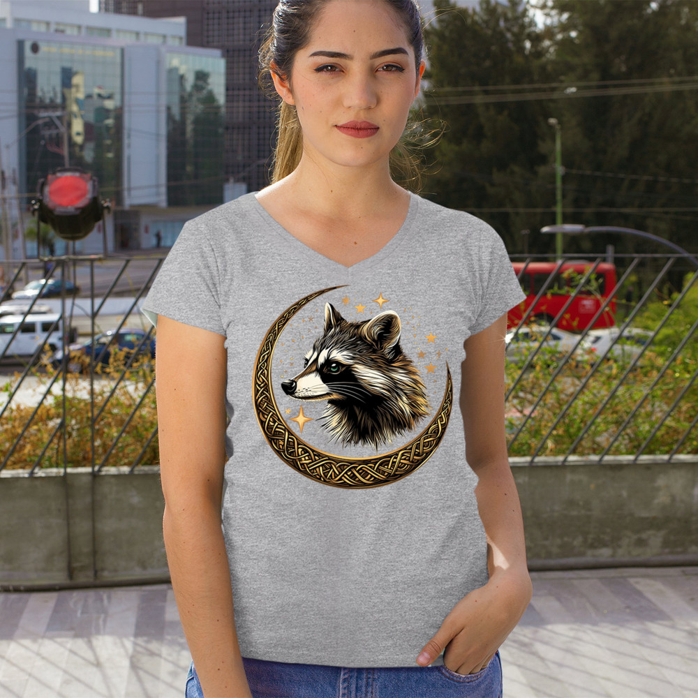 Cosmic raccoon design in Celtic moon. Symbol of adaptability, mystery, and spiritual intelligence. A perfect gift for wild and curious souls.
